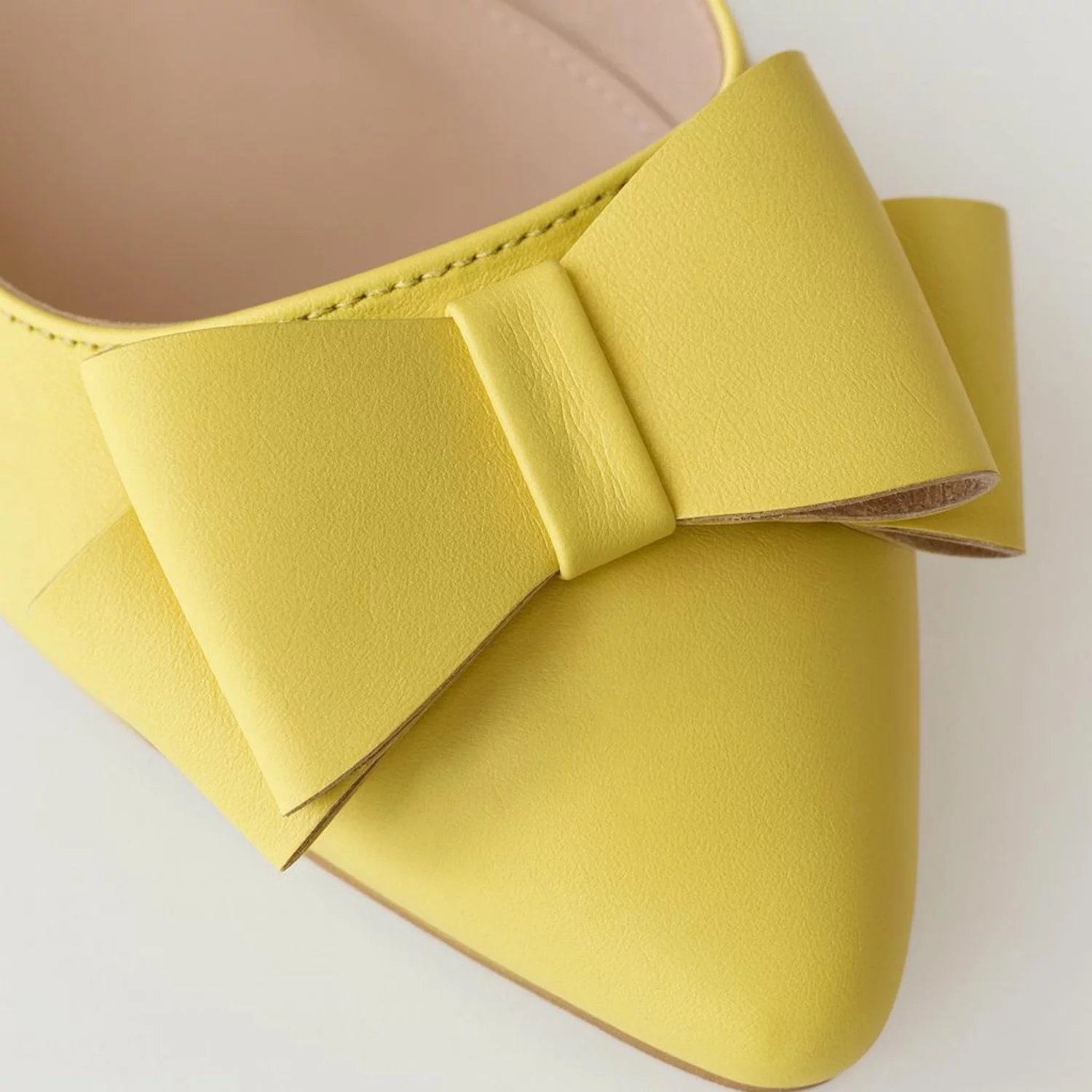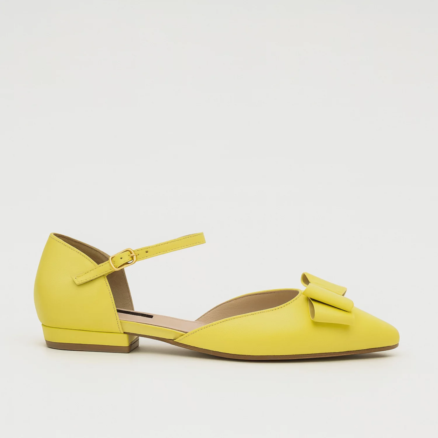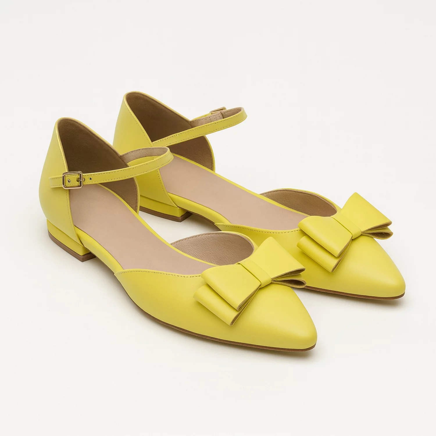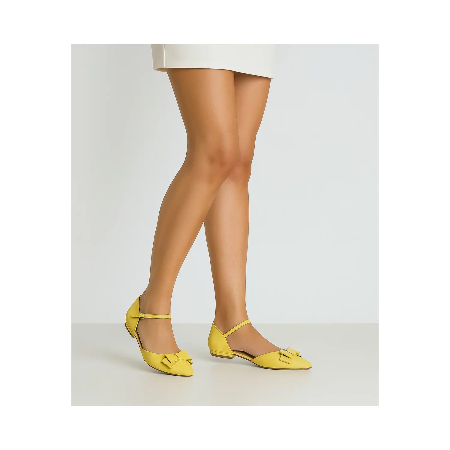 - Balerini decupati din piele naturala galben pai cu funda. Confectionti din piele naturala galben pai.
