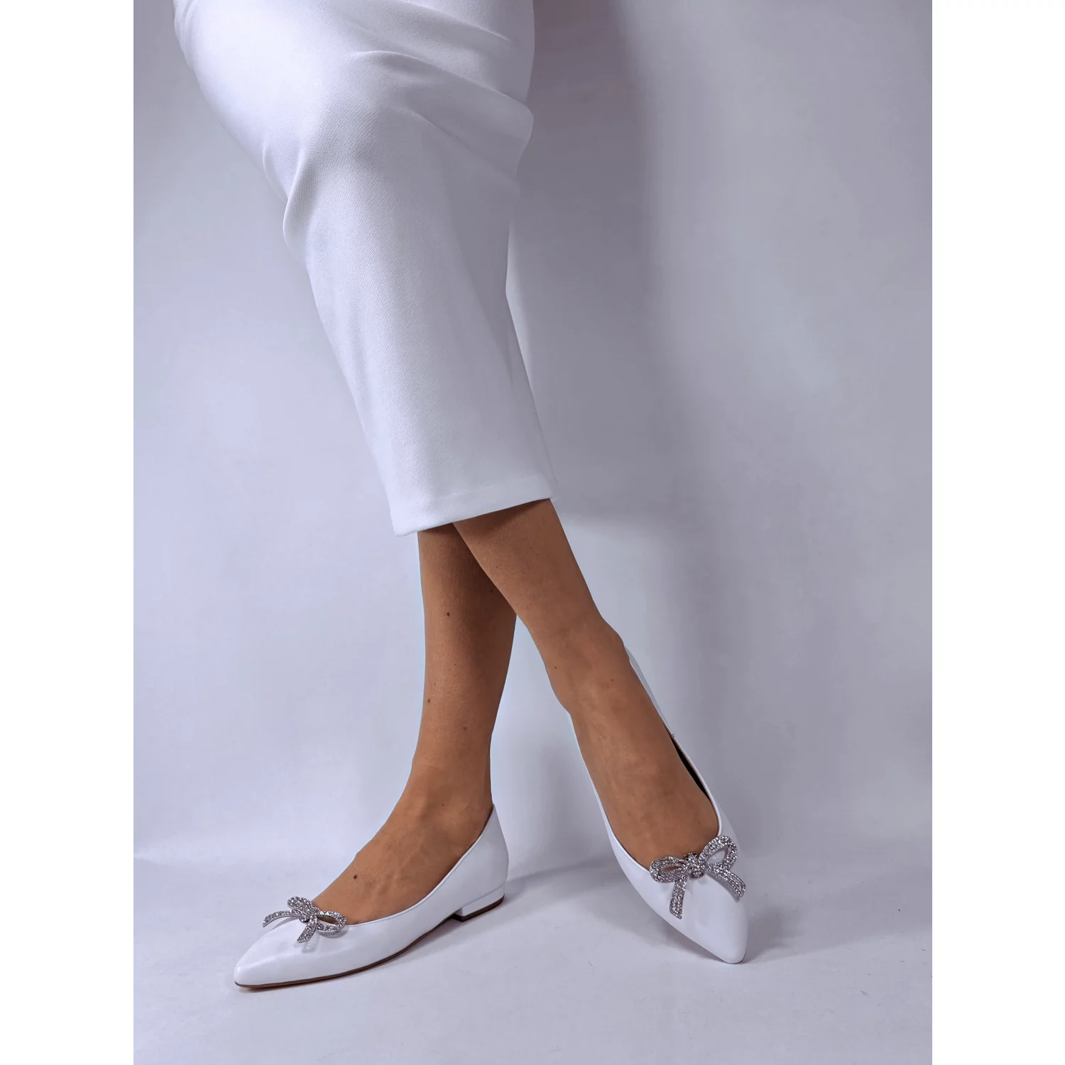 Balerini Piele Naturala Albi cu accesorii fundite detasabile Veronika