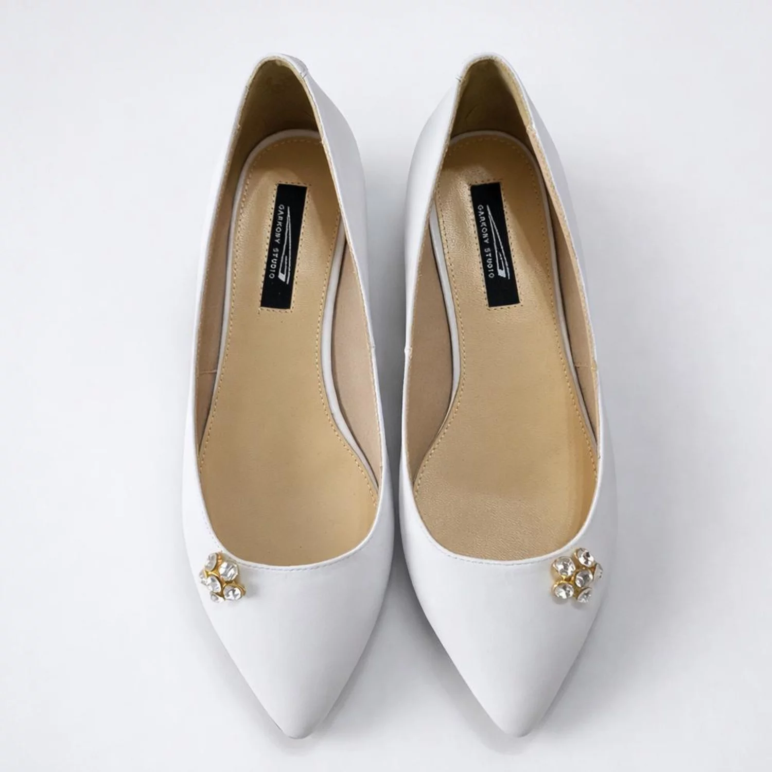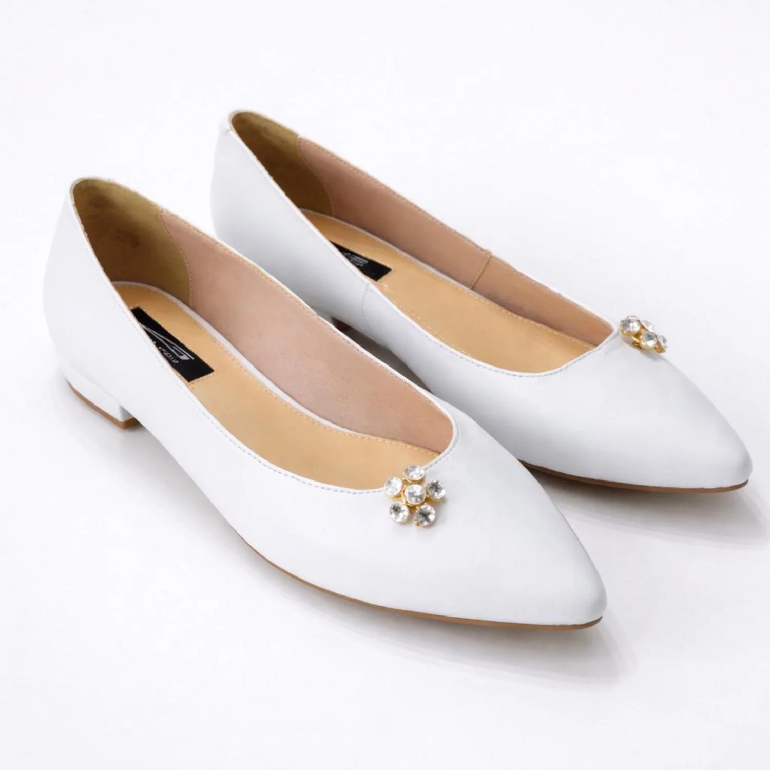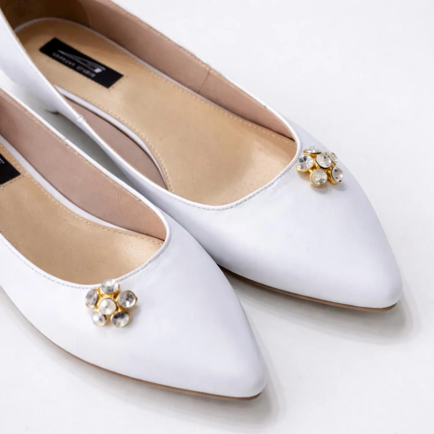 Balerini Piele Naturala Albi cu accesoriu strasuri Floria