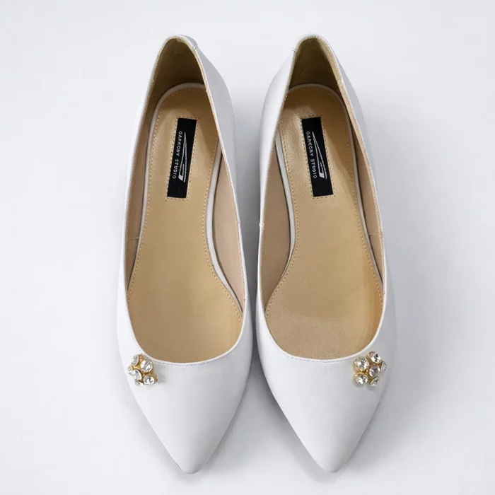 Balerini Floria din piele naturală albă, eleganți și confortabili, cu accesoriu fin decorativ. Colecție nouă Garkony. Mărimi 34–41.