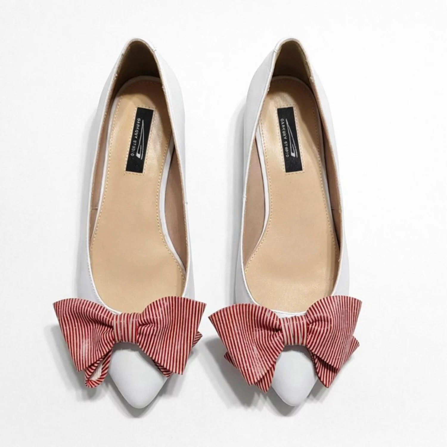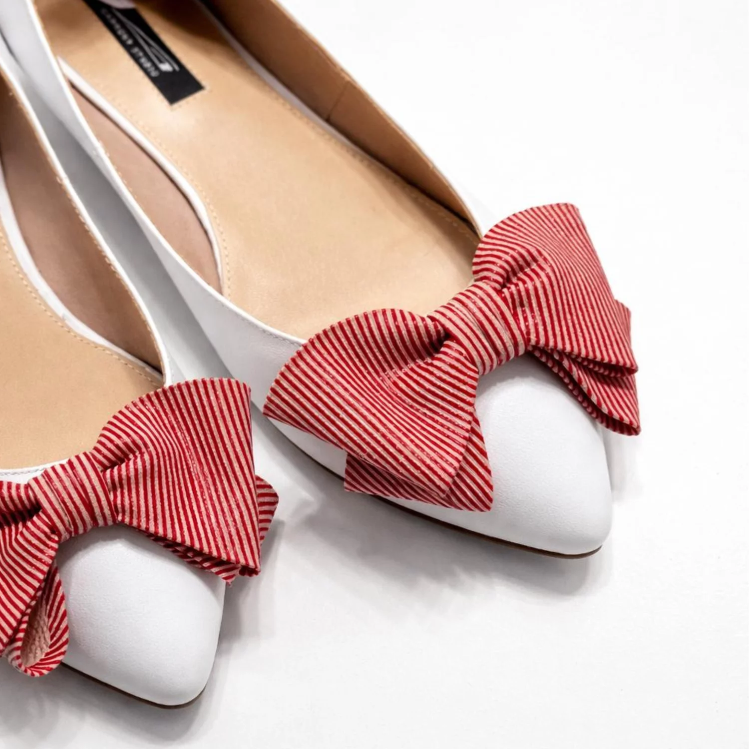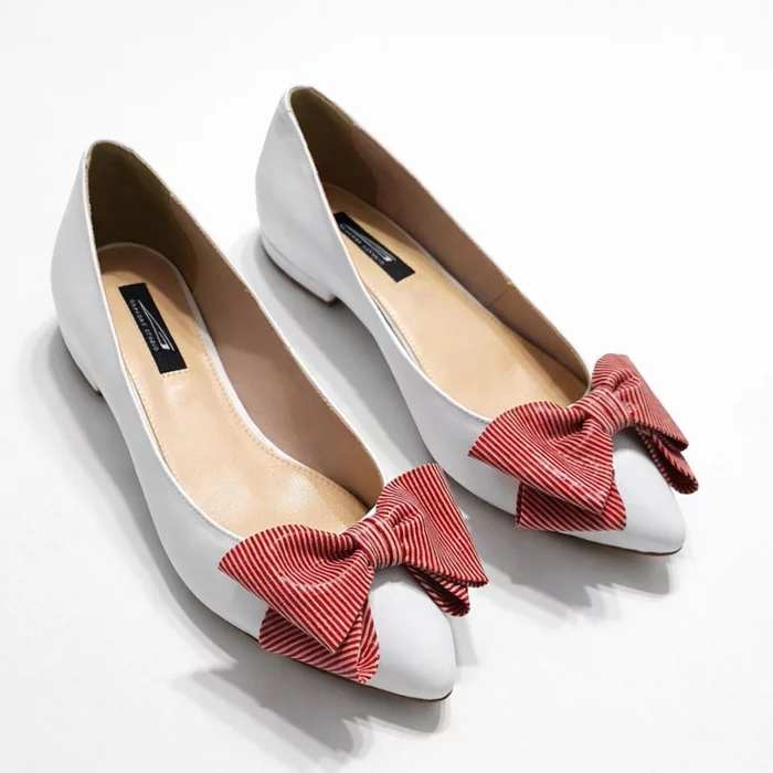 Balerini Alisia cu fundă din piele naturală alba si fundita rosie – stil feminin și confort premium