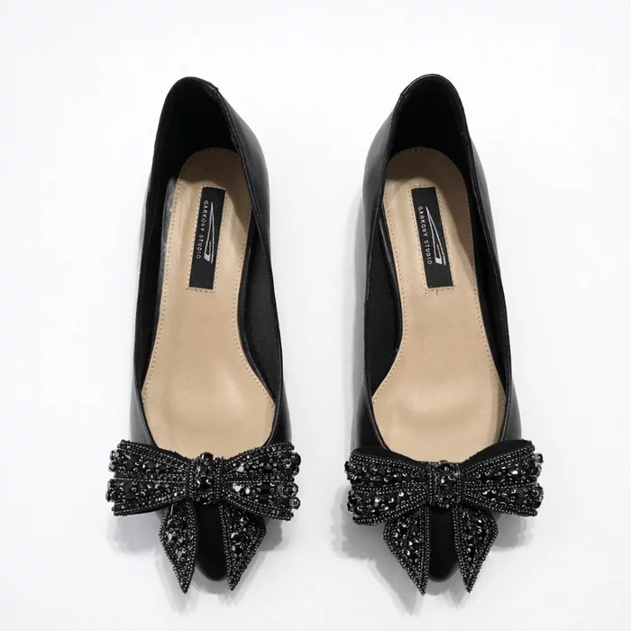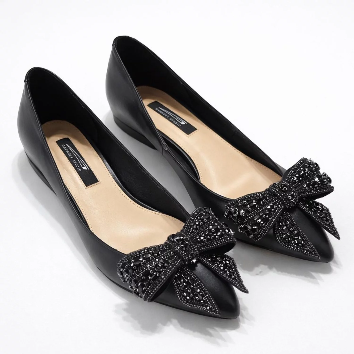 Balerini Love Angel din piele naturală box negru, cu fundă decorativă elegantă. Interior din piele, mărimi 34–41, colecția nouă Garkony.