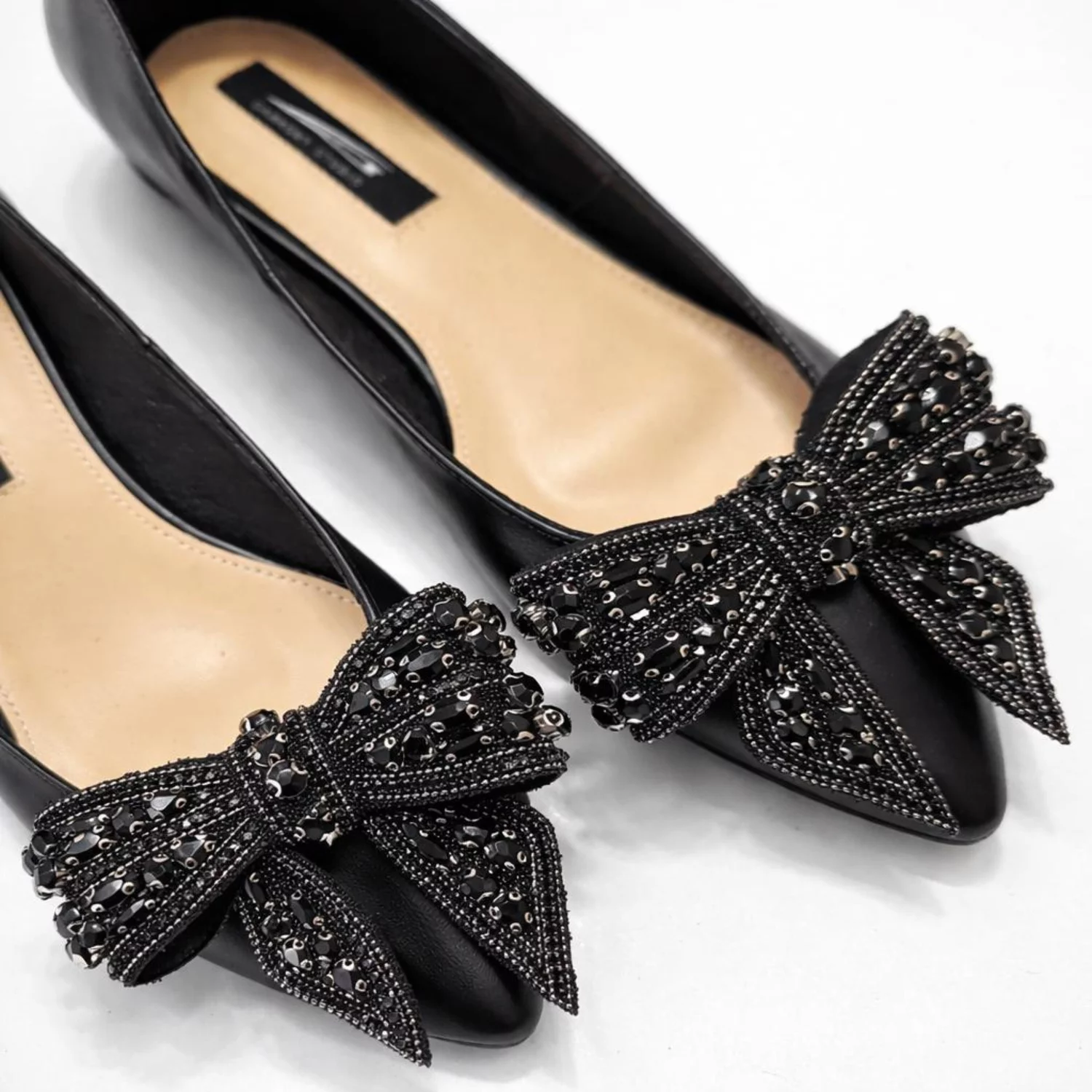 Balerinii Love Angel sunt realizați din piele naturală box negru, oferind un aspect rafinat și feminin, perfect pentru ținute elegante sau casual chic. Elementul central îl reprezintă funda superbă decorativă, care adaugă un plus de strălucire și stil, transformând acest model într-o piesă de impact.