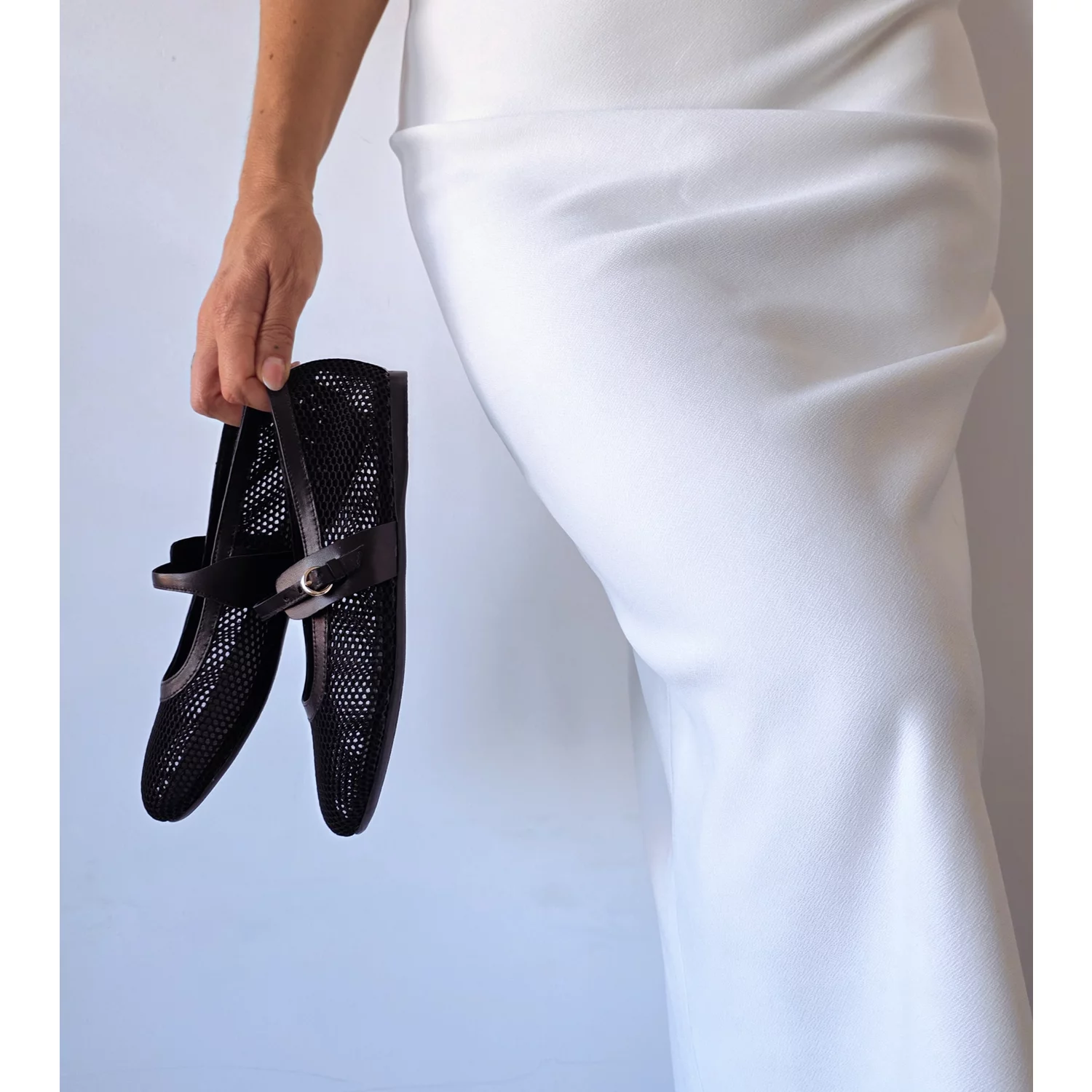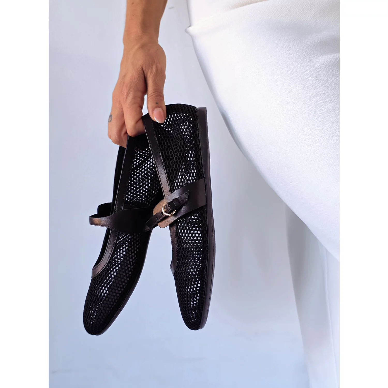 Balerini Piele Naturala negri cu plasa Glosy
