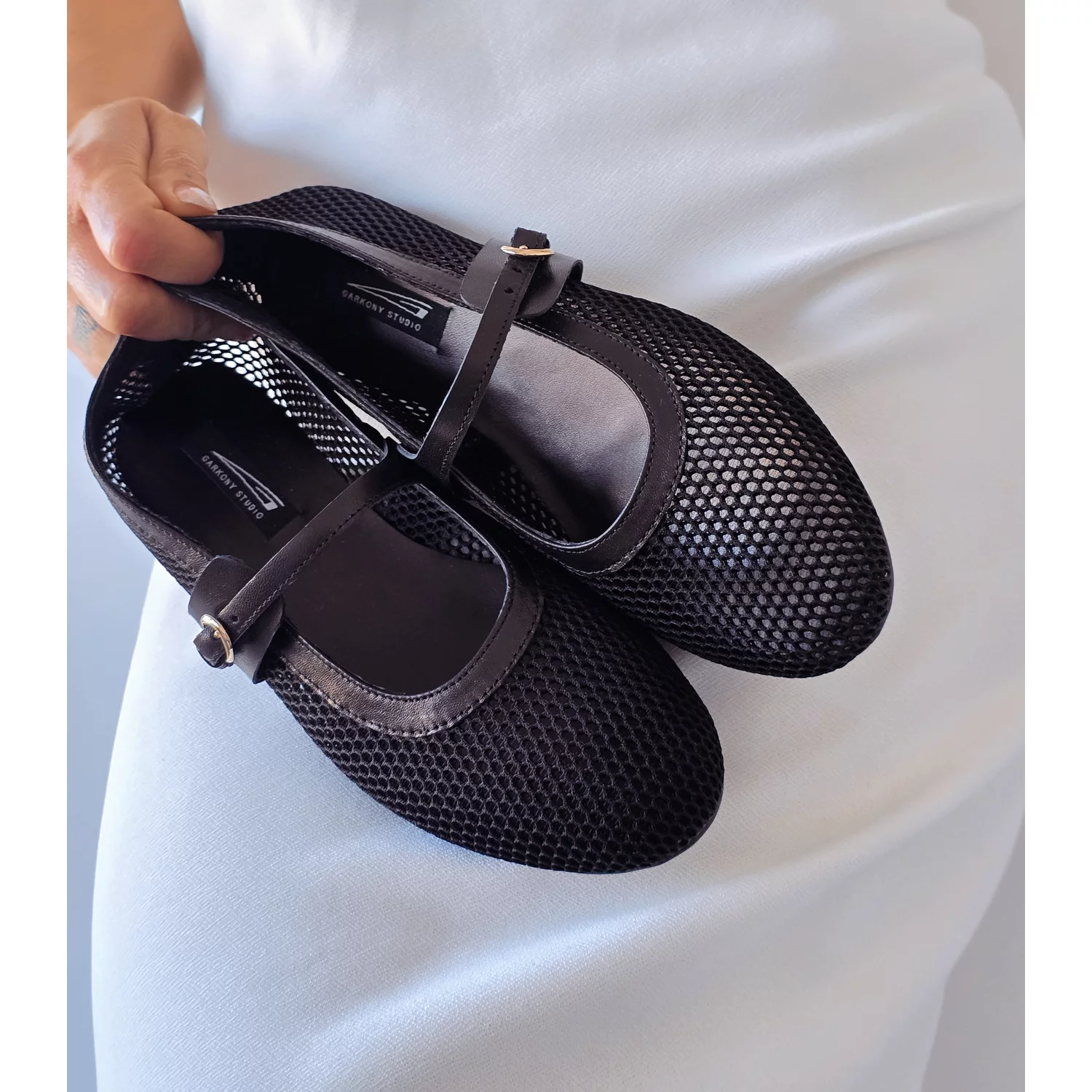 Balerini din Piele Naturala Neagra si textilplasa . Balerini cu varf rotund. Captuseala, fata si brantul balerinilor sunt din piele naturala. Brantul balerinilor este prevazut cu un buret special care ofera un plus de comoditate. Producator GARKONY