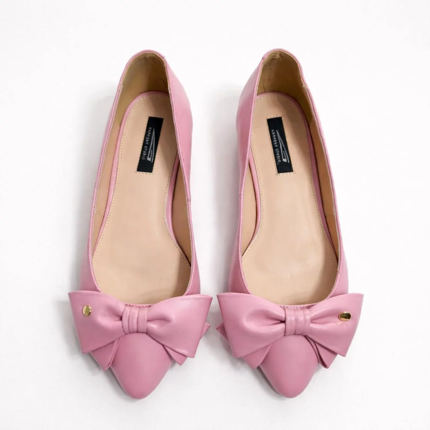 Balerini Alisia cu fundă din piele naturală box roz. Interior din piele, mărimi 35–41, colecția nouă. Producător Garkony.