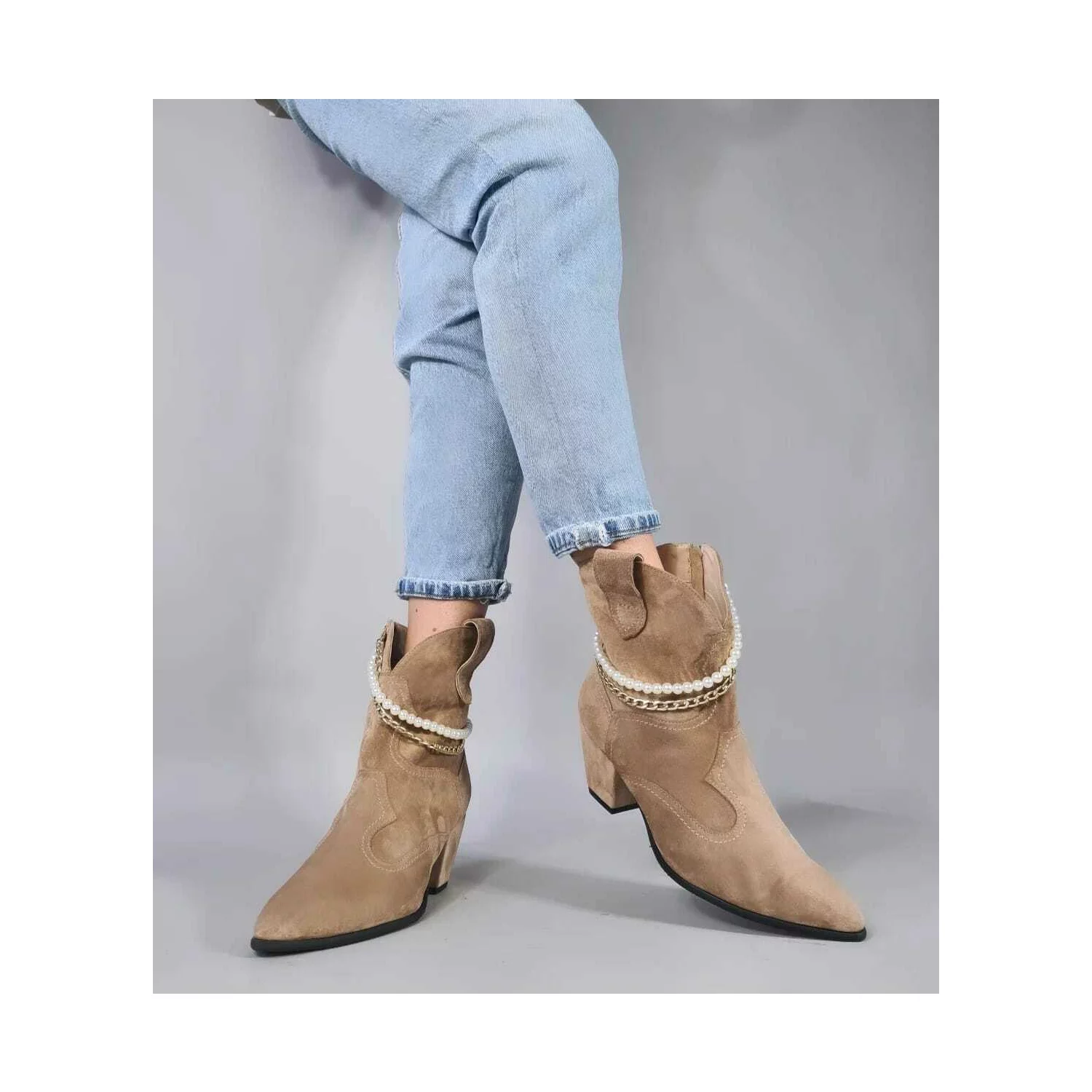 Ciocate dama Piele Naturala Bej accesorizate cu lant perle Sisa