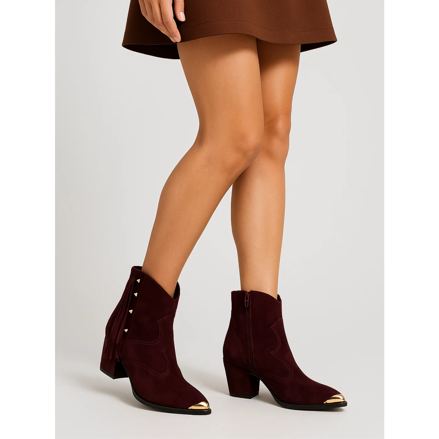 Ciocate Piele Naturala Bordo cu franjuri Dallas