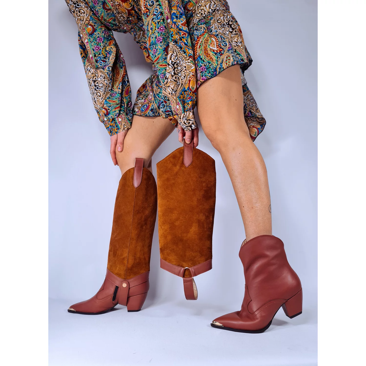- Cizme de dama cu carambi detasabili. Carambii se fixeaza cu capsa la interior. Se pot scoate si purta cu alta pereche de incaltaminte. Cizmele se pot transfoma in ghetute dupa preferintele clientului. ACESTI CARAMBI SE POT ACHIZIONA SI SEPARAT.