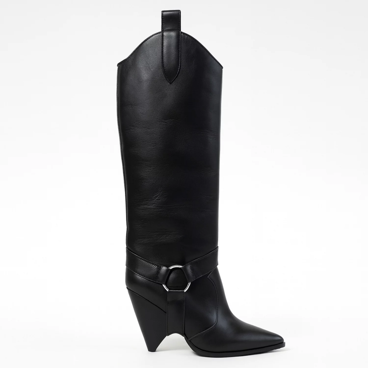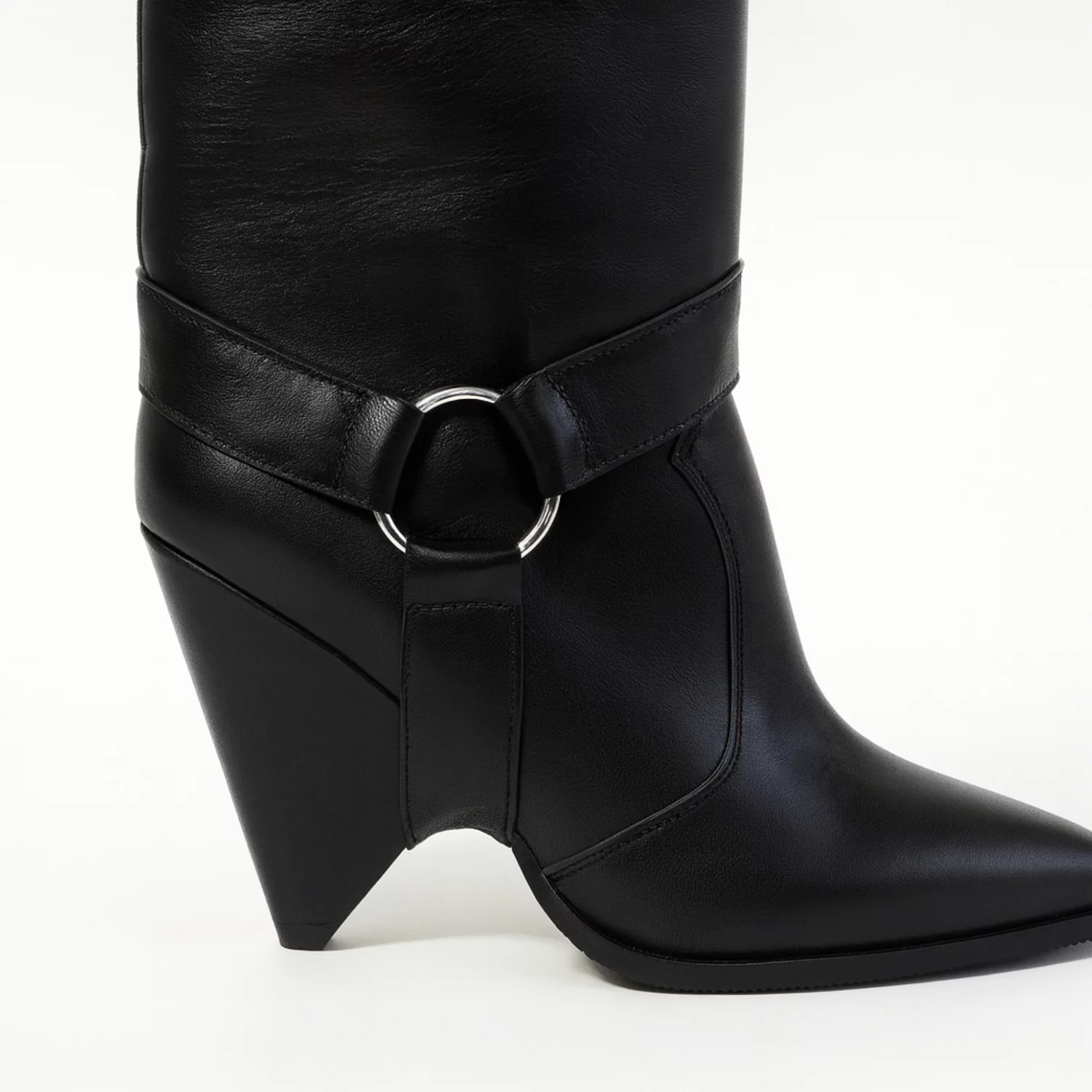 Cizme și botine damă din piele naturală neagra, model modular 2 în 1. Fabricate manual în atelierul nostru, elegante și versatile.