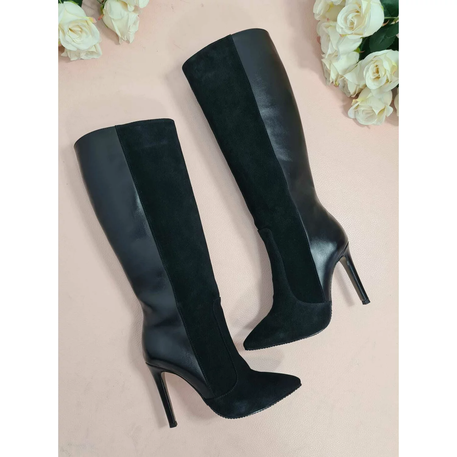 - Cizme de dama din piele intoarsa cu toc cui.