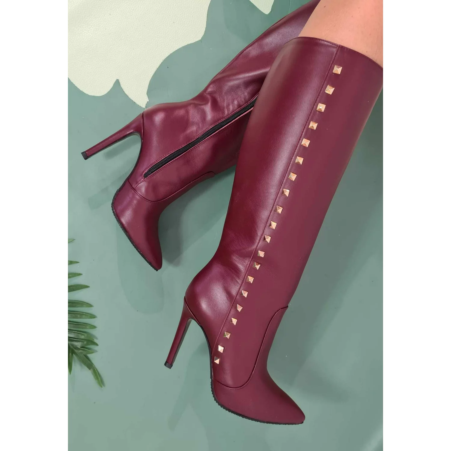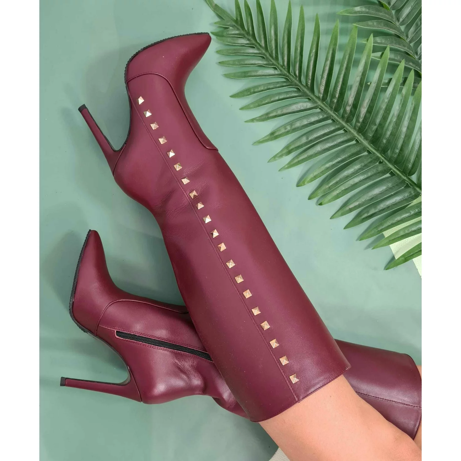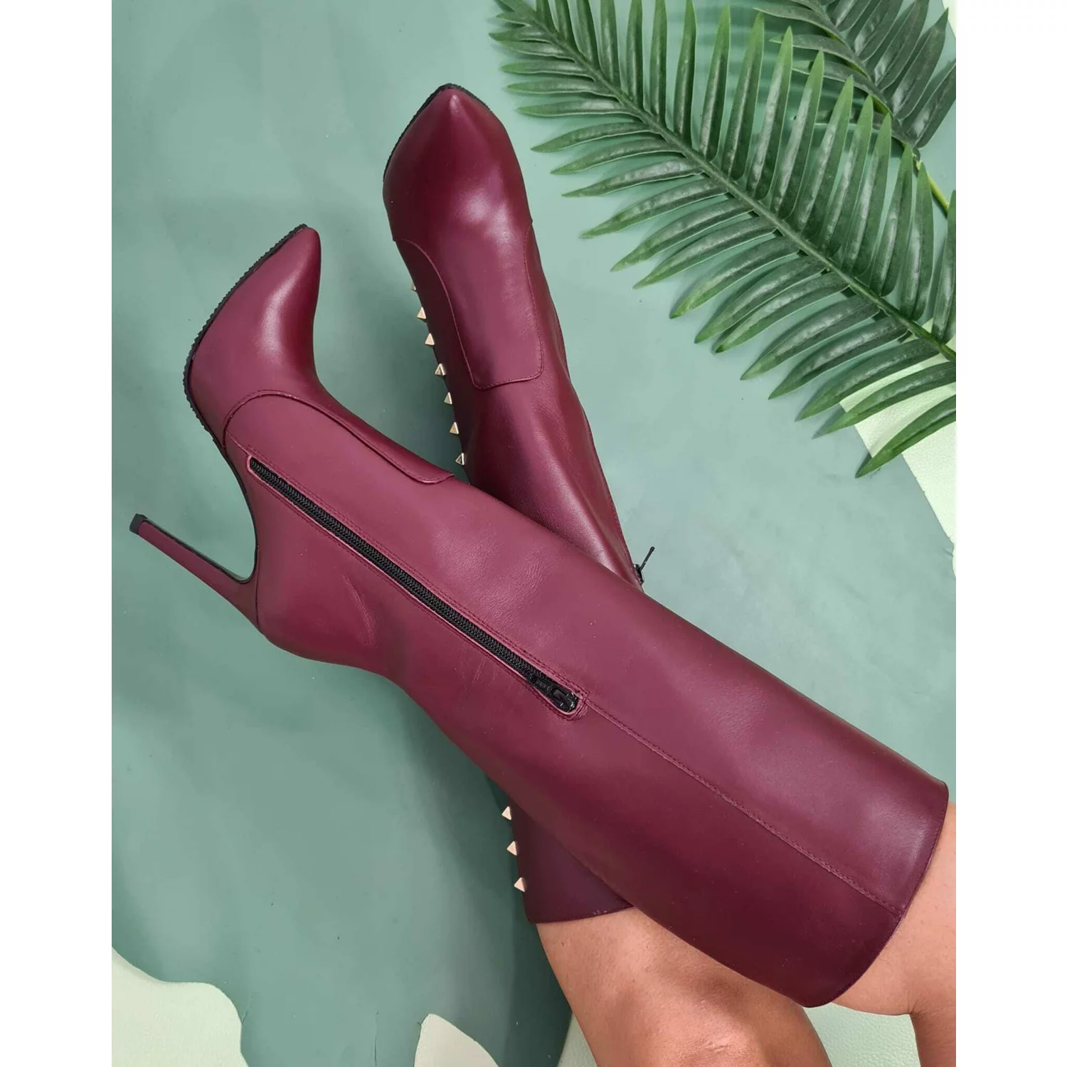 Cizme Piele Naturala bordo Tyna