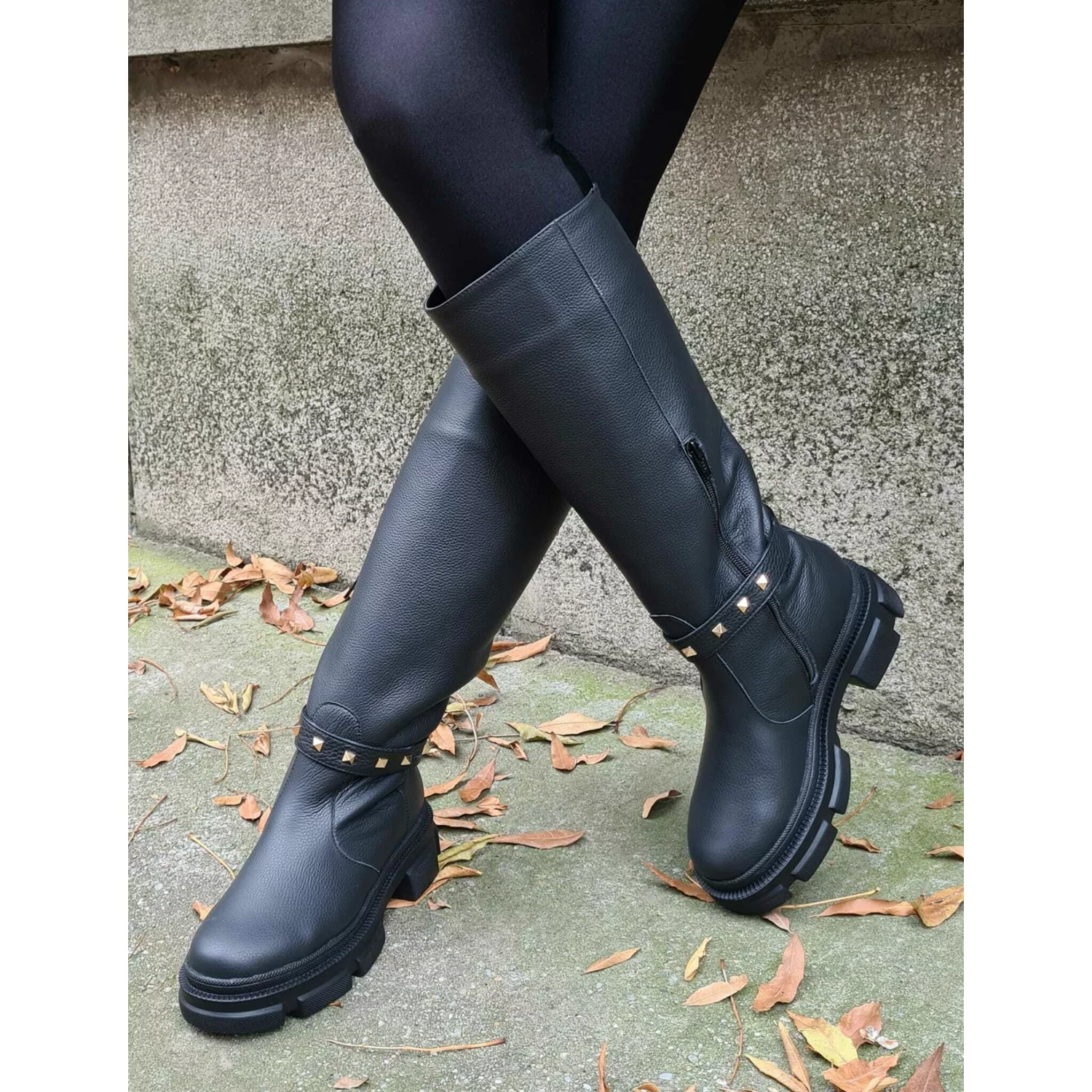 - Cizmede dama din piele naturala acesorizate cu capse aurii piramide.