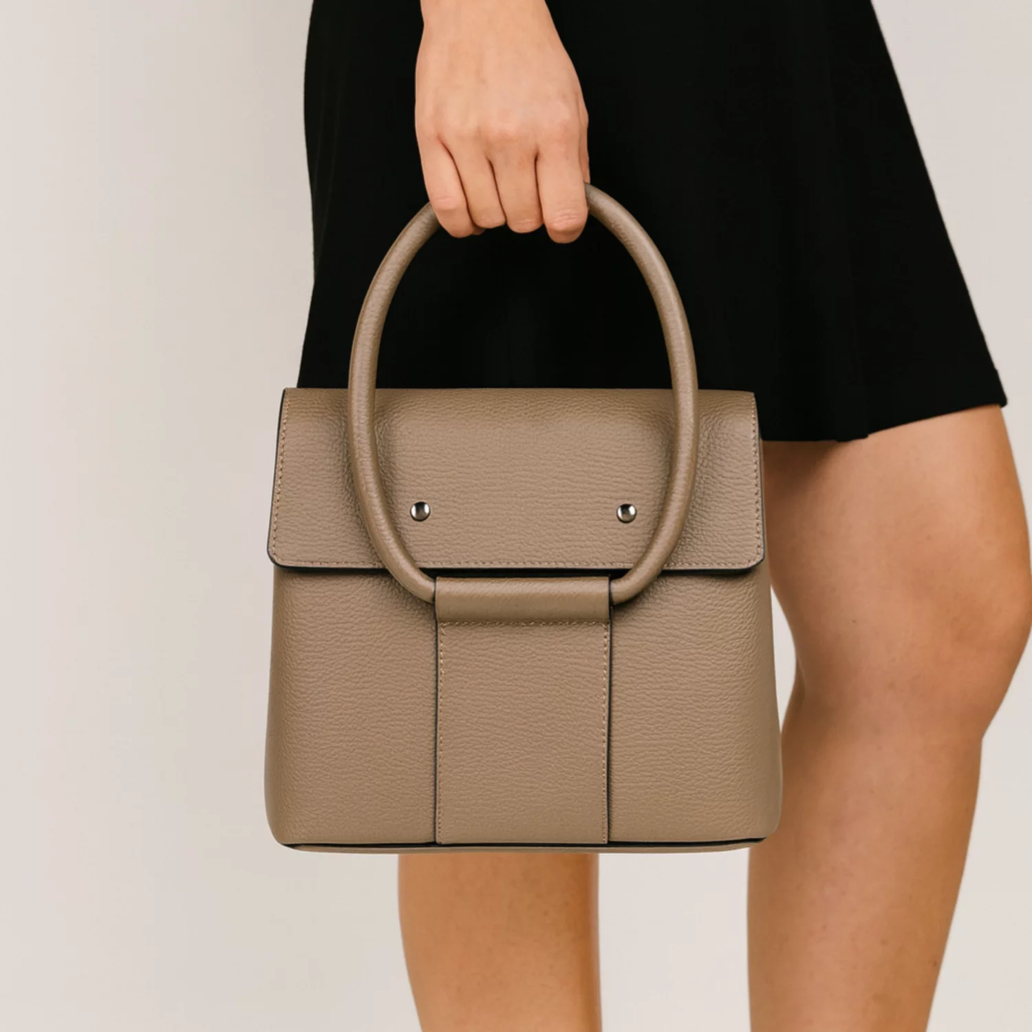 - Geanta din piele naturala, model casual inchidere cu capac frontal cu capse.