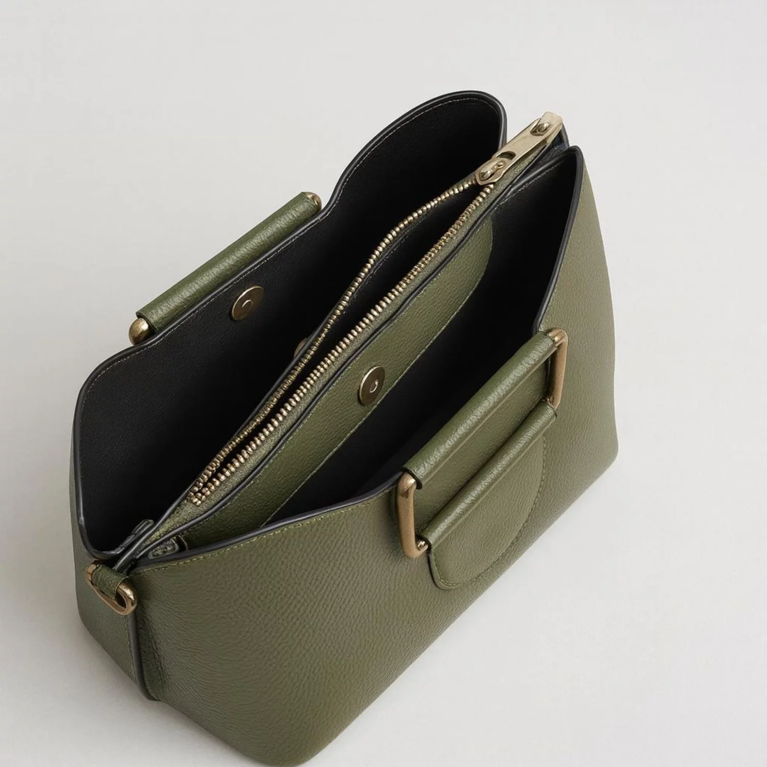 - Confectionata manual din piele naturala exterior; interior textil si piele