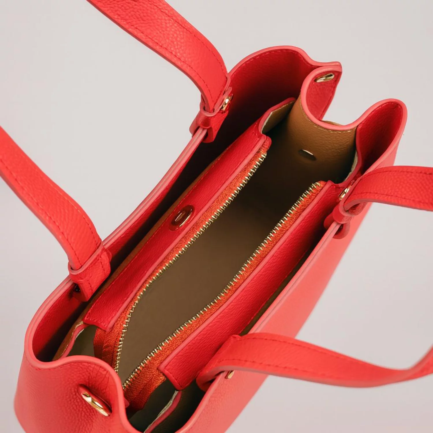 - Confectionata manual din piele naturala exterior; interior textil si piele