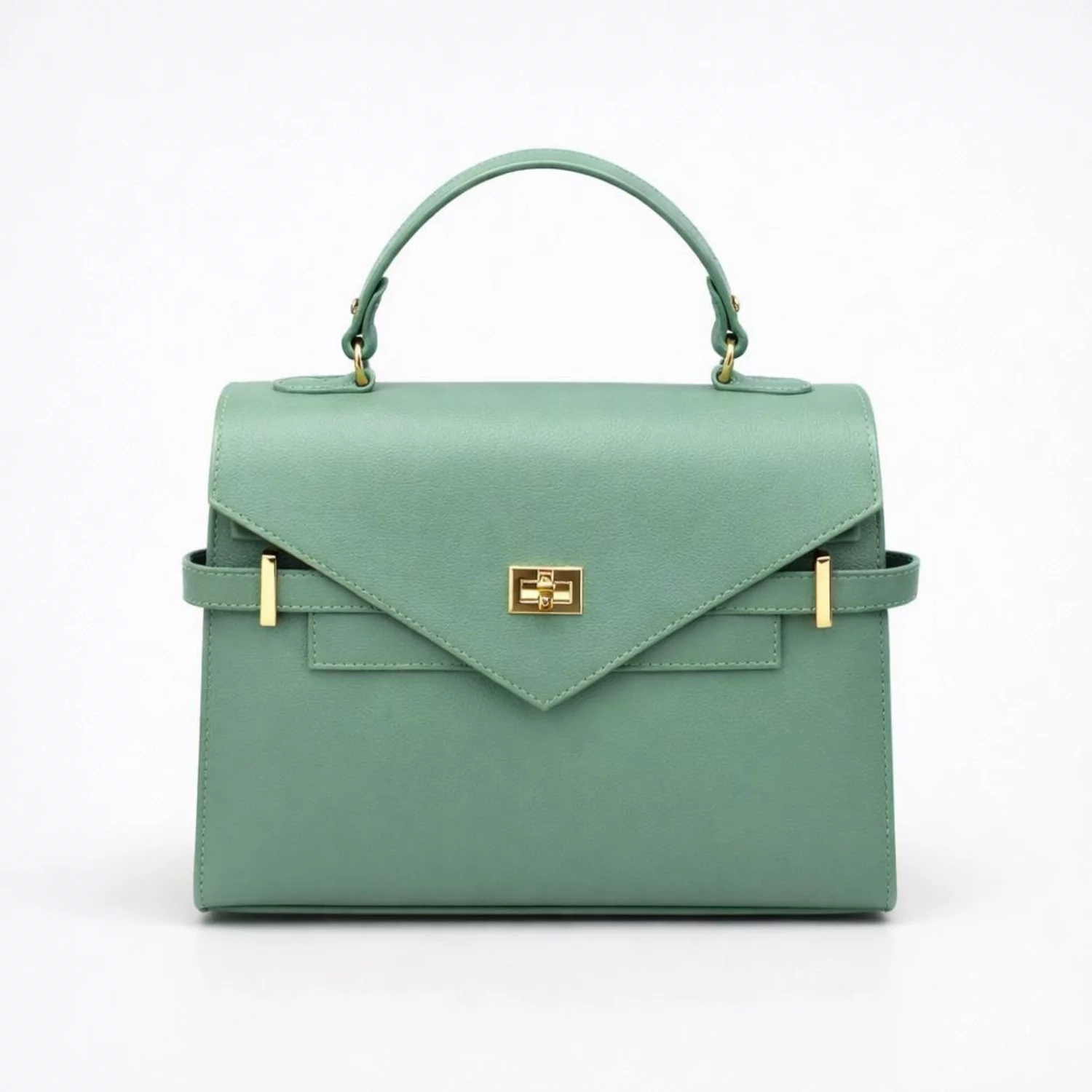 Descoperă geanta Solara, un accesoriu statement realizat din piele naturală premium, ce îmbină eleganța clasică cu funcționalitatea modernă. Din piele naturala verde cu detalii metalice aurii, această geantă aduce un plus de rafinament oricărei ținute, fie că este office, casual sau de ocazie.