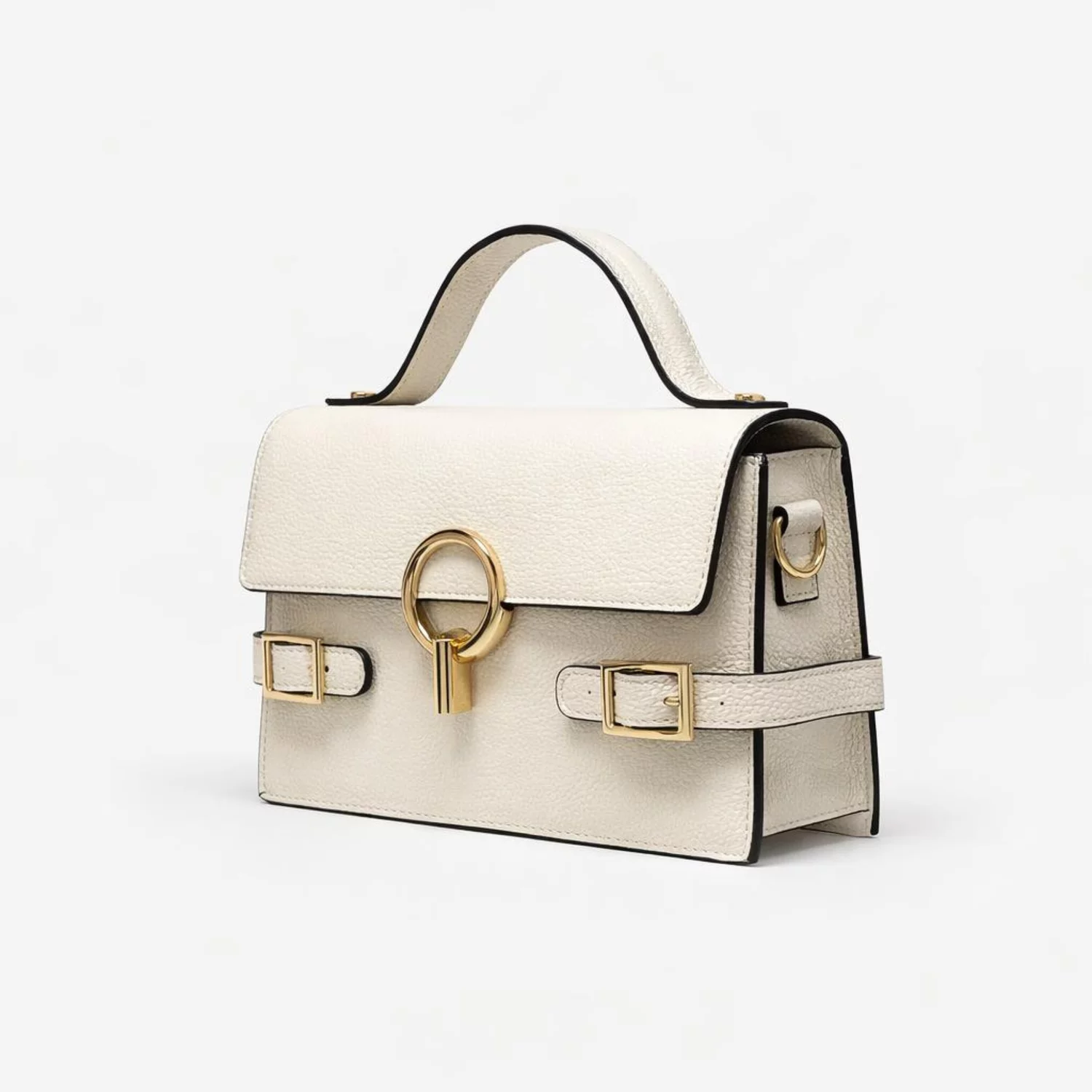 Geanta Nova din piele naturală crem, colecție nouă. Design elegant, interior generos, curea reglabilă. Livrare imediată din stoc.