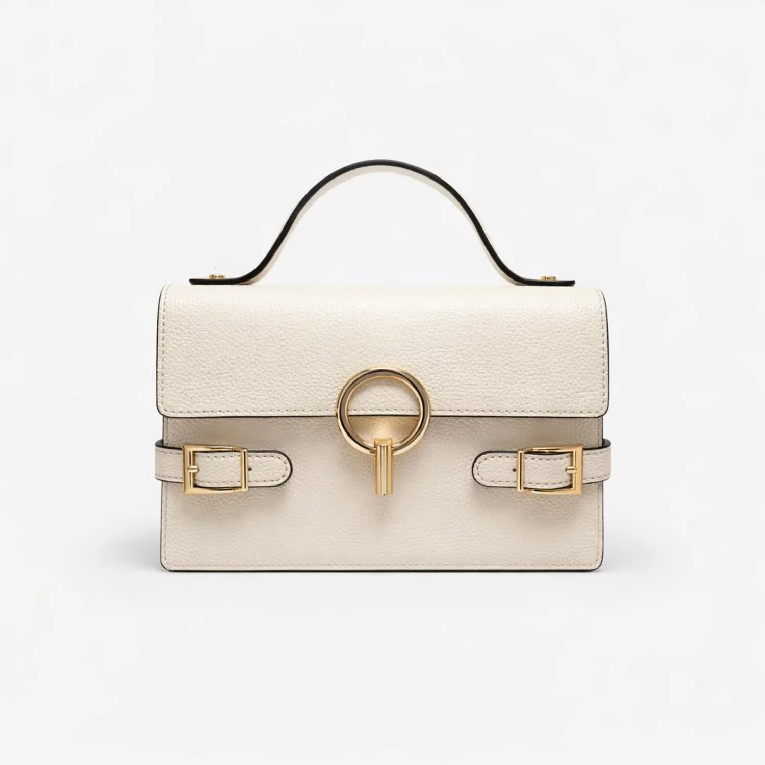 Geanta Nova este realizată din piele naturală crem, fiind un accesoriu elegant și sofisticat, potrivit atât pentru ținute de zi, cât și pentru apariții de seară. Parte din colecția nouă, acest model se remarcă prin designul modern și detaliile metalice rafinate.