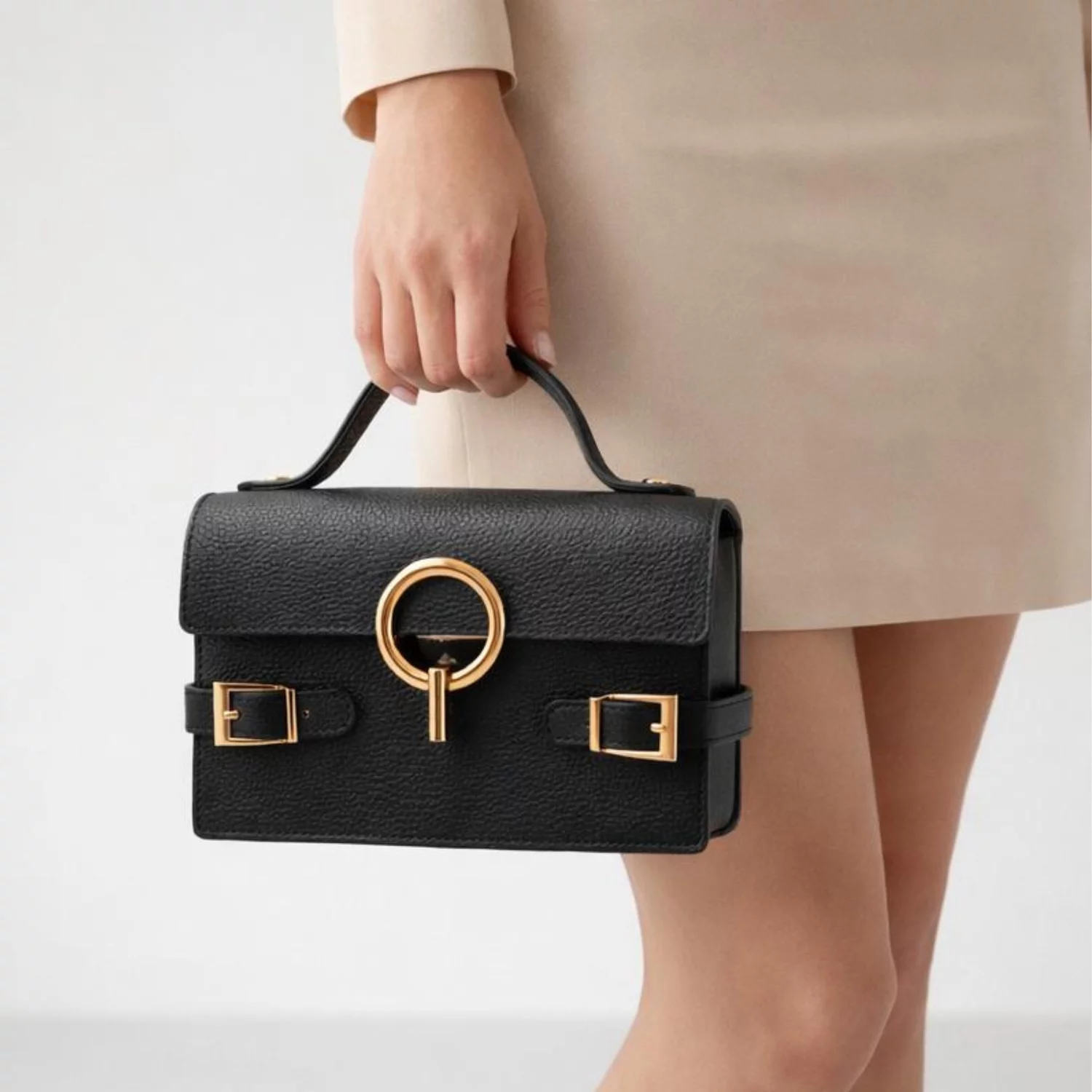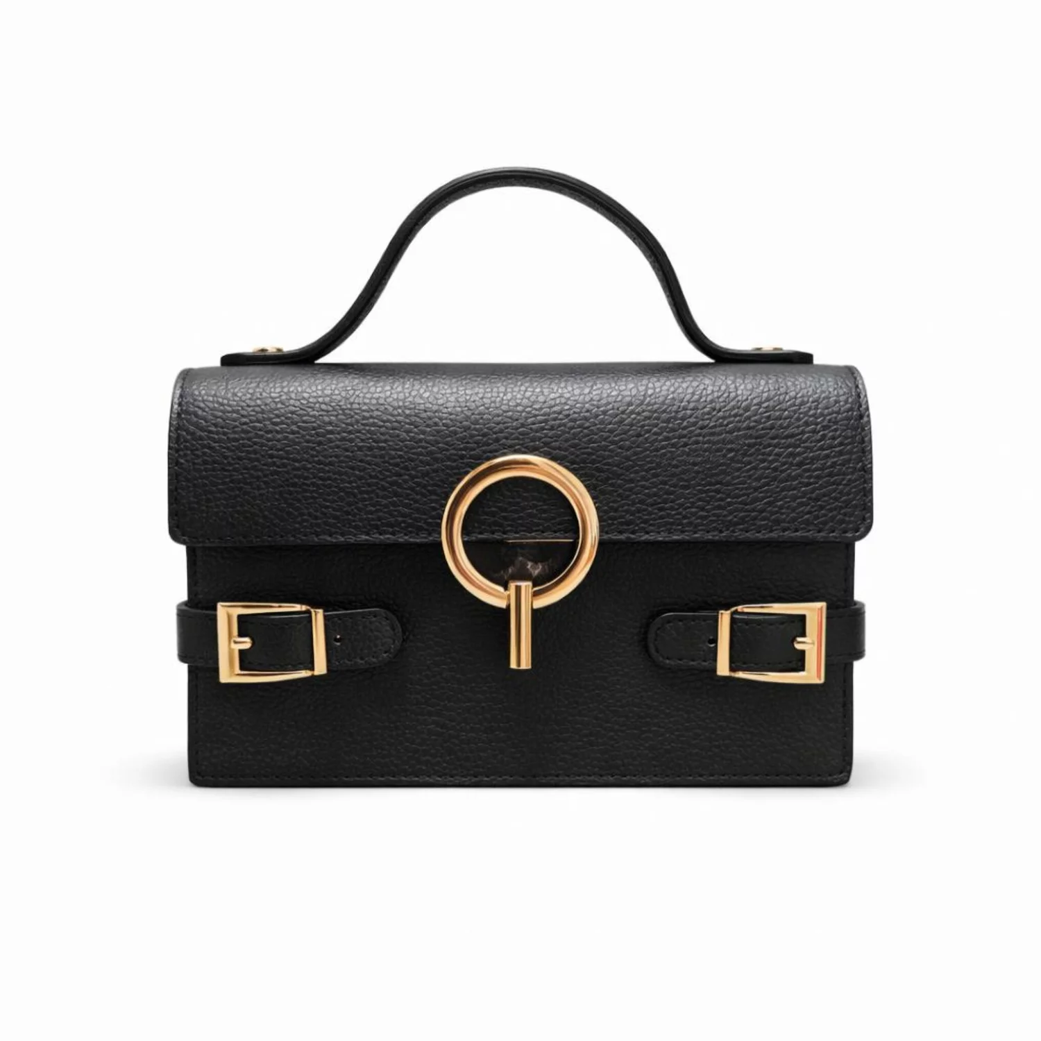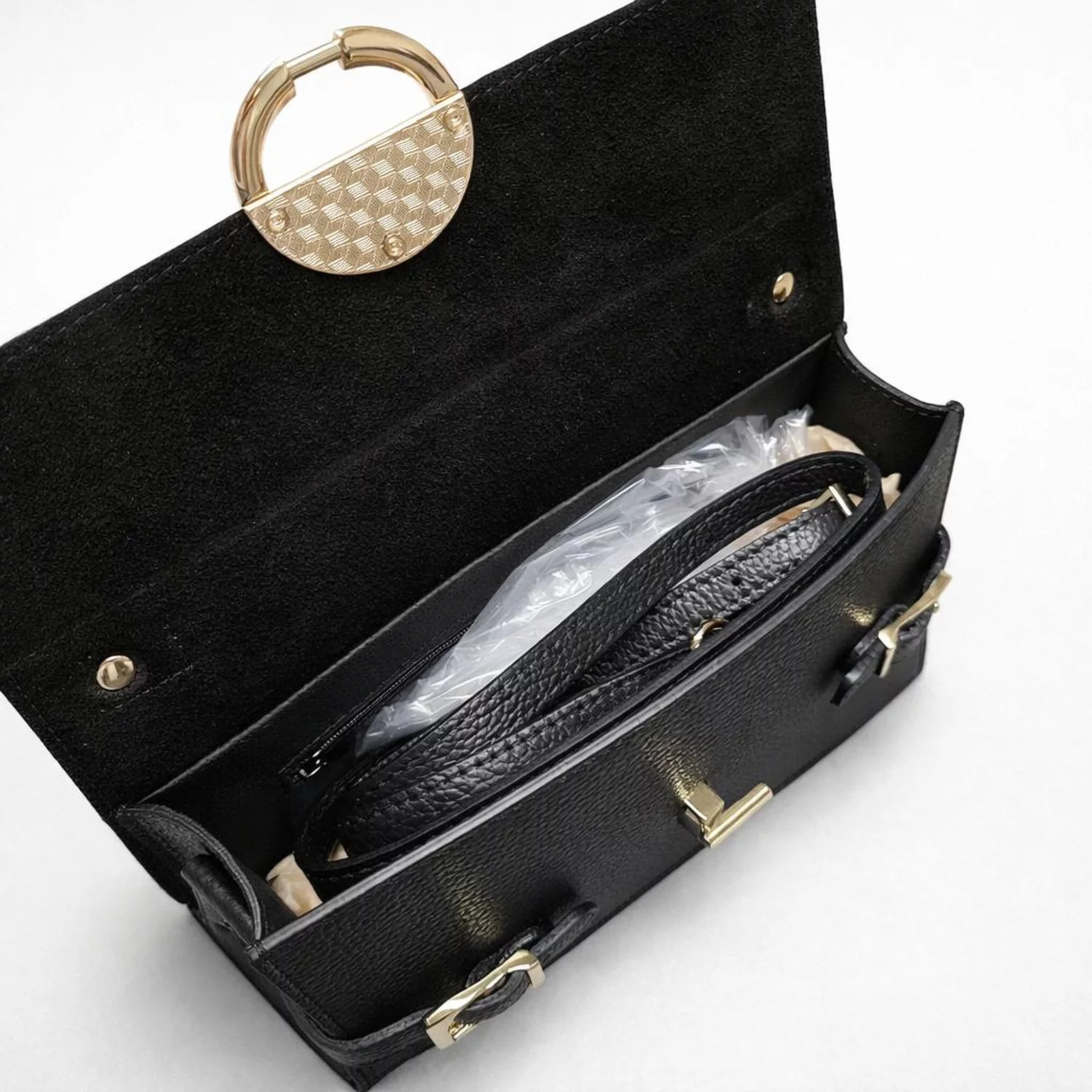 Geanta Nova este realizată din piele naturală neagră, fiind un accesoriu elegant și sofisticat, potrivit atât pentru ținute de zi, cât și pentru apariții de seară. Parte din colecția nouă, acest model se remarcă prin designul modern și detaliile metalice rafinate.