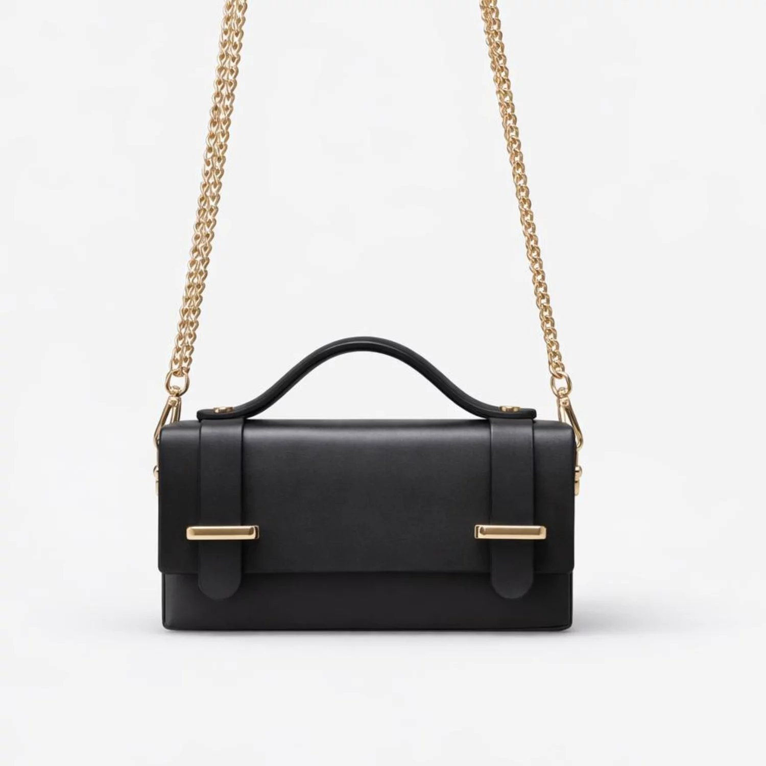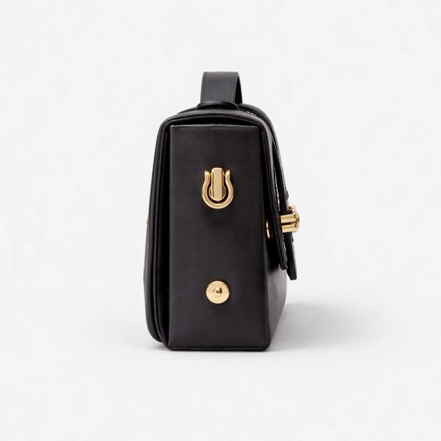 Geanta mini Virelle din piele naturală neagră este alegerea perfectă pentru un look elegant, minimalist și sofisticat. Parte din colecția nouă, acest model compact impresionează prin designul modern și detaliile metalice discrete.