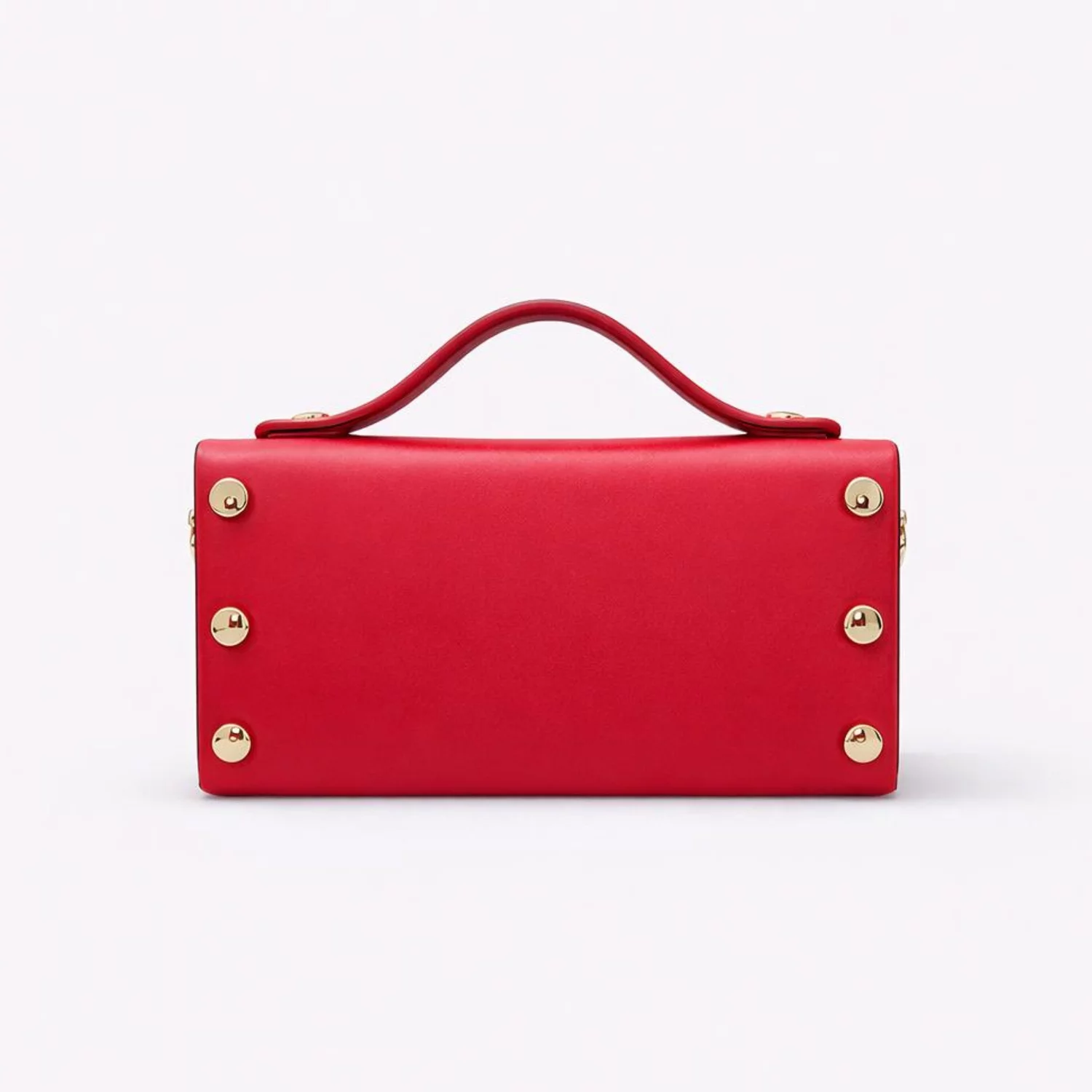 Geanta mini Virelle din piele naturală rosie este alegerea perfectă pentru un look elegant, minimalist și sofisticat. Parte din colecția nouă, acest model compact impresionează prin designul modern și detaliile metalice discrete.