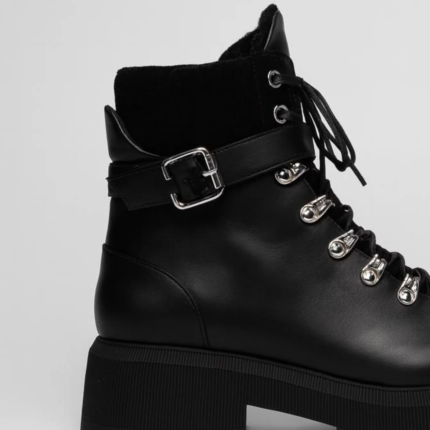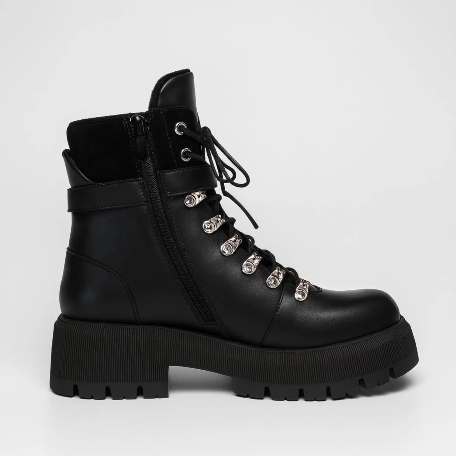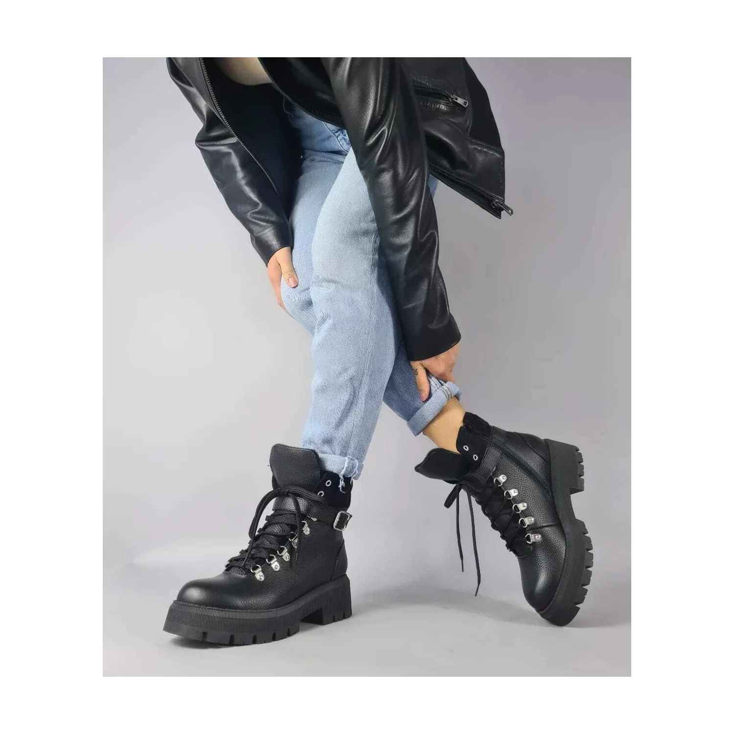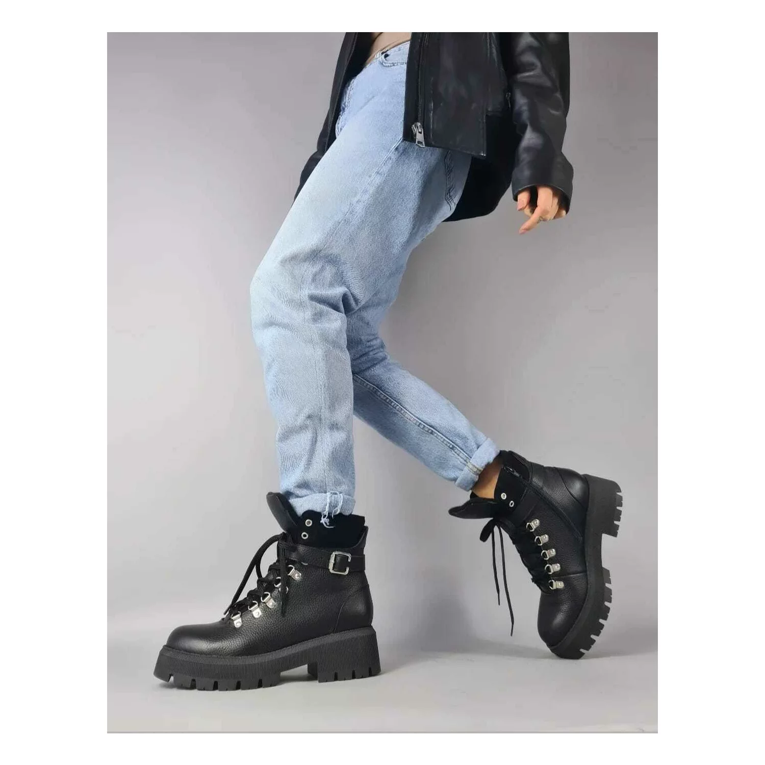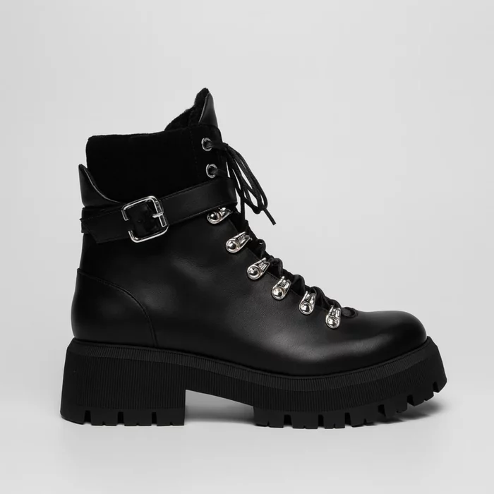 Designul robust este completat de închiderea cu șireturi metalice și cataramă reglabilă, oferind un plus de siguranță și stabilitate. Talpa groasă, antiderapantă, garantează confort și aderență optimă, iar interiorul moale asigură o purtare plăcută pe tot parcursul zilei.