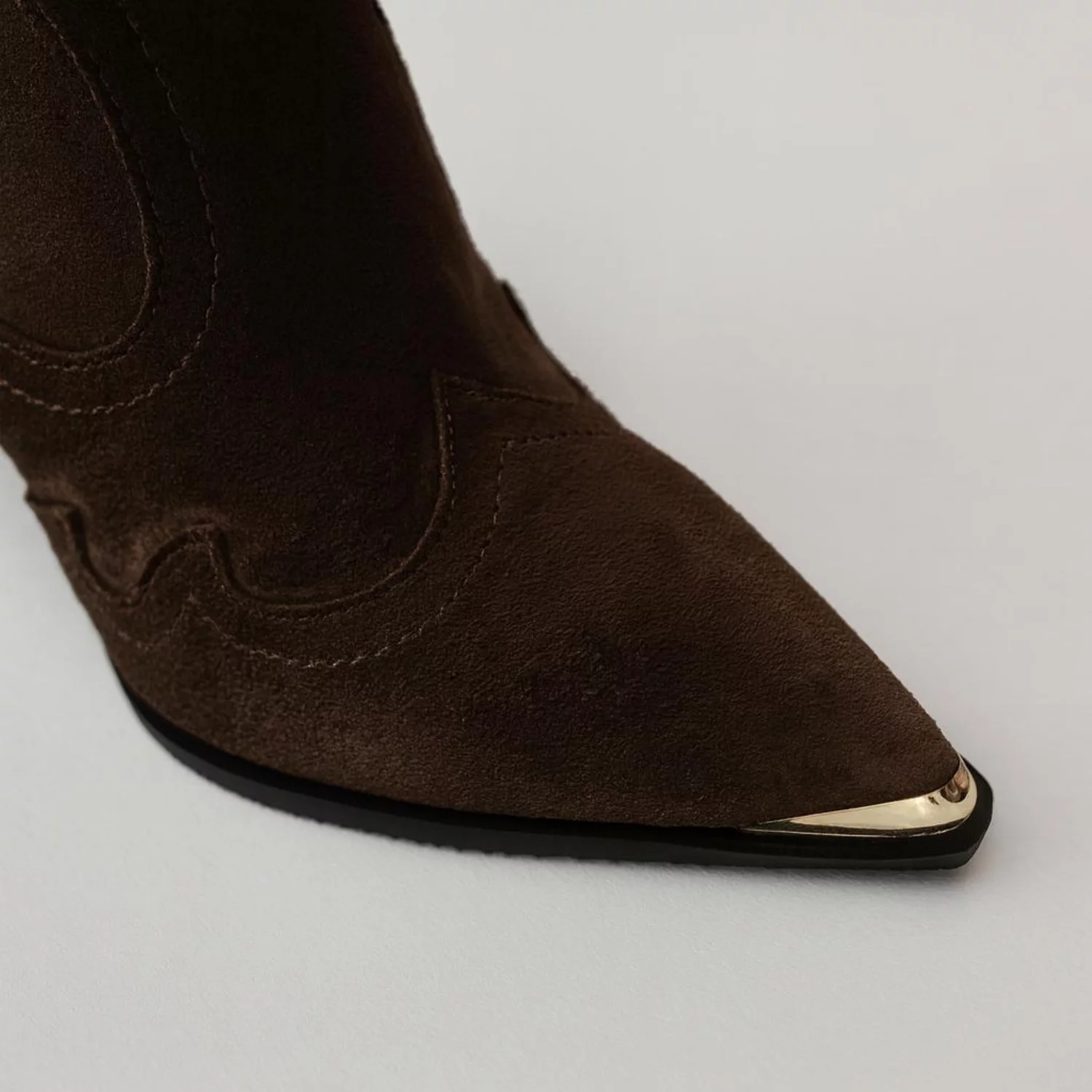 Detalii: cusături decorative, vârf metalic elegant
