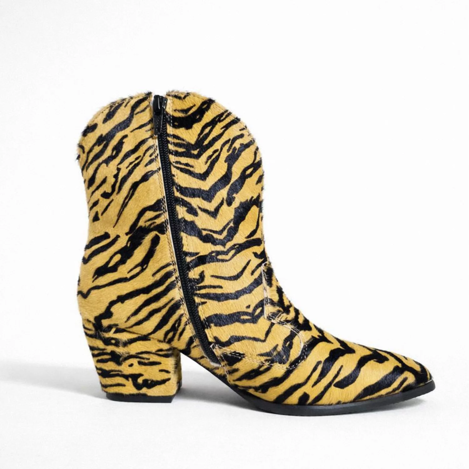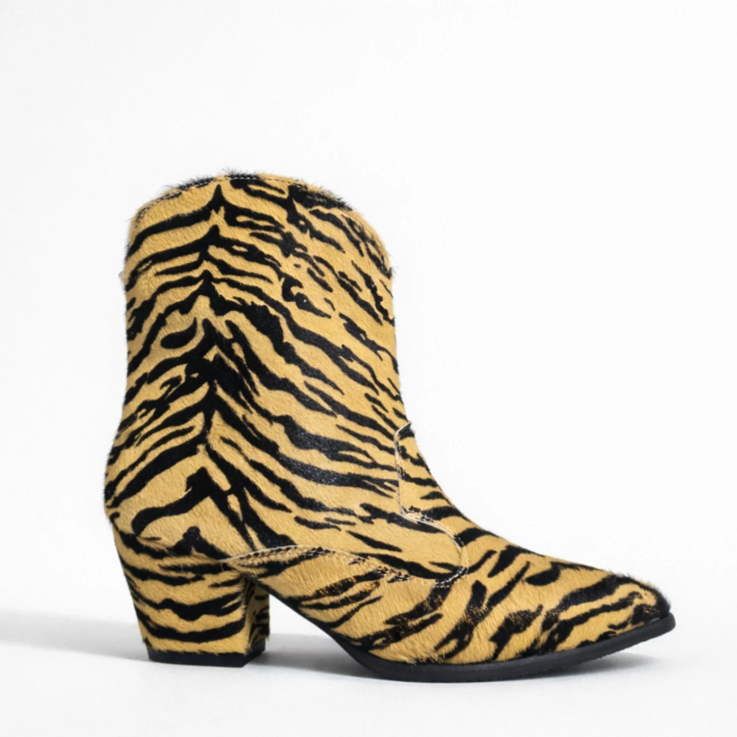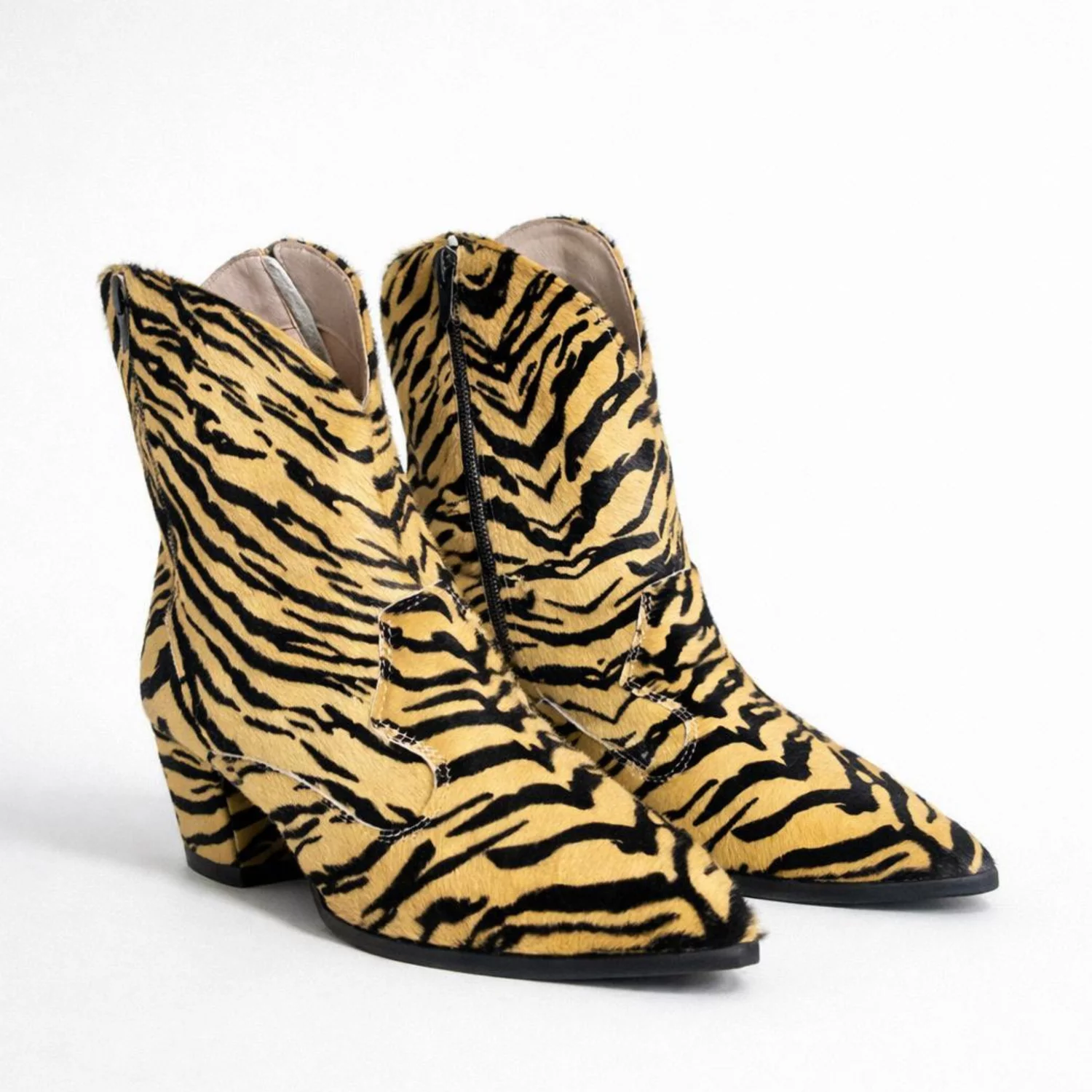 Ciocate damă Kira din piele naturală, imprimeu ponei leopard, toc mediu stabil și închidere cu fermoar. Design western modern și confort – semnate Garkony.