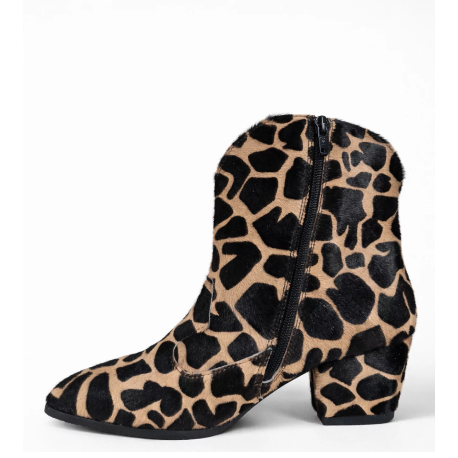 Ciocate damă Kira din piele naturală, imprimeu ponei leopard, toc mediu stabil și închidere cu fermoar. Design western modern și confort – semnate Garkony.