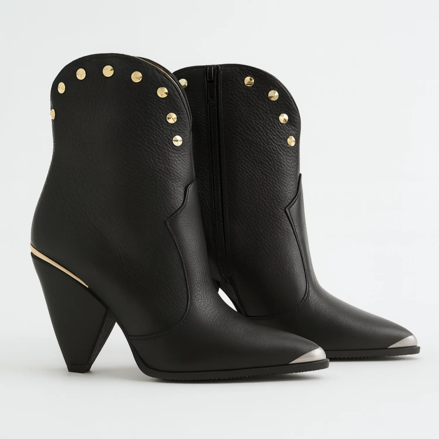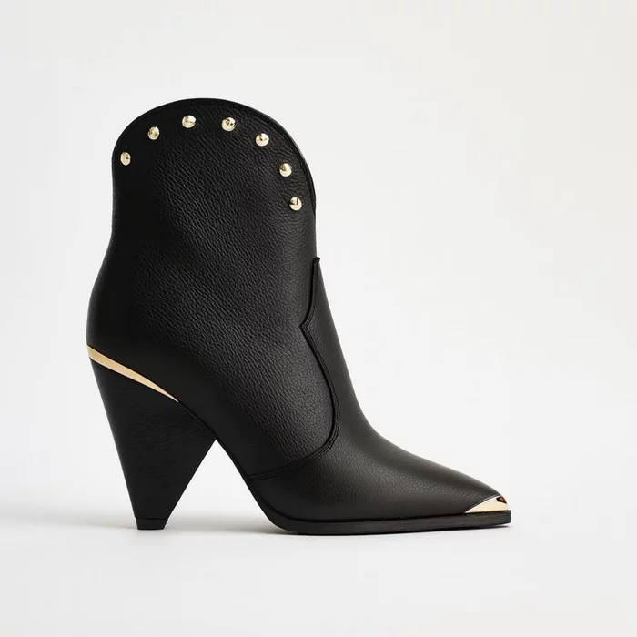 Botine damă din piele naturală – fabricate manual, cu toc înalt și detalii metalice