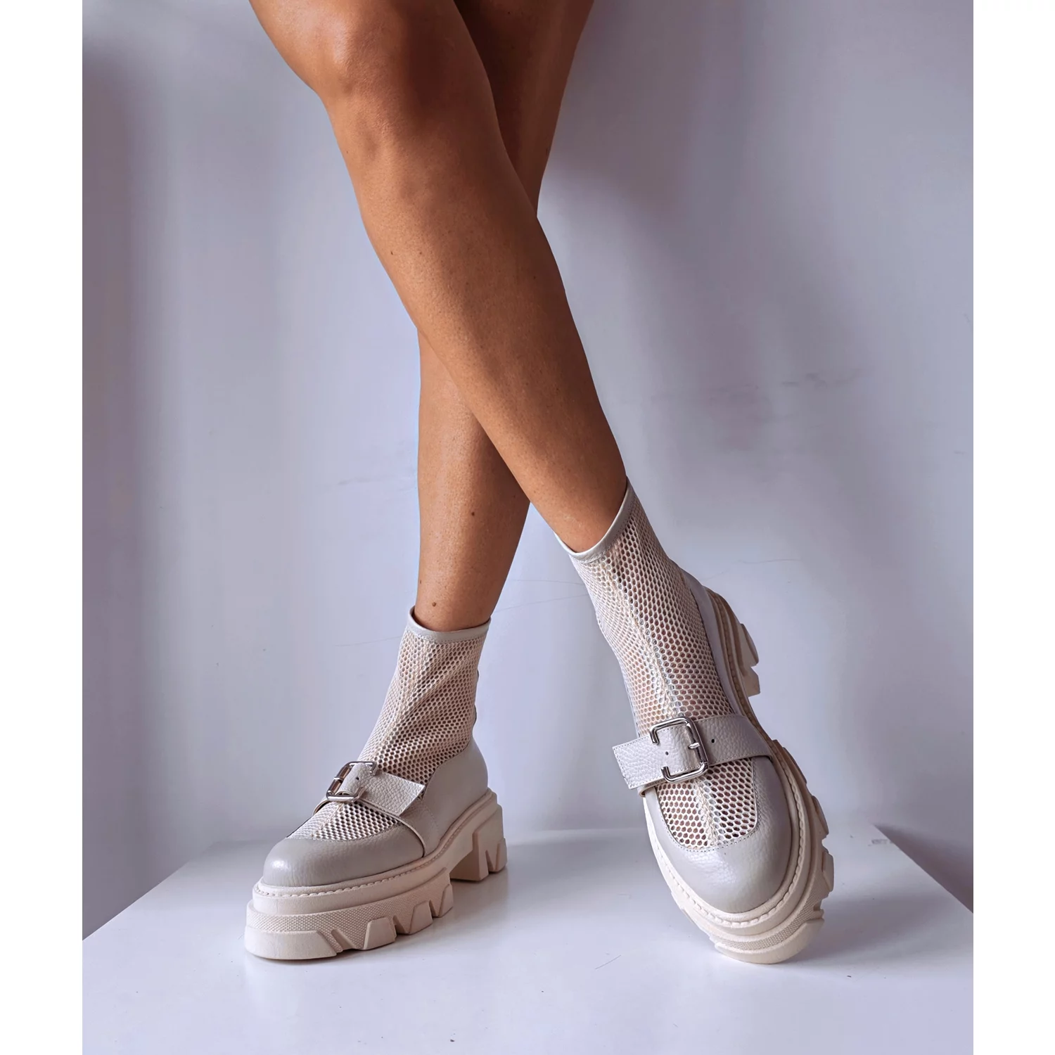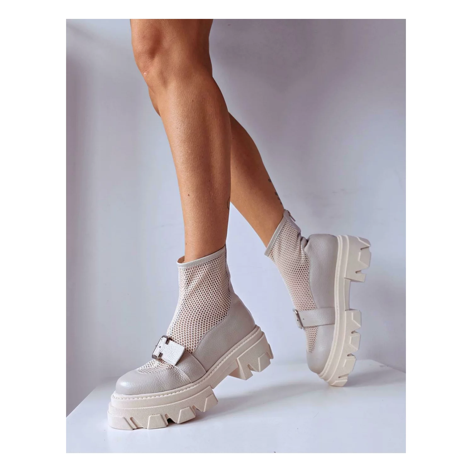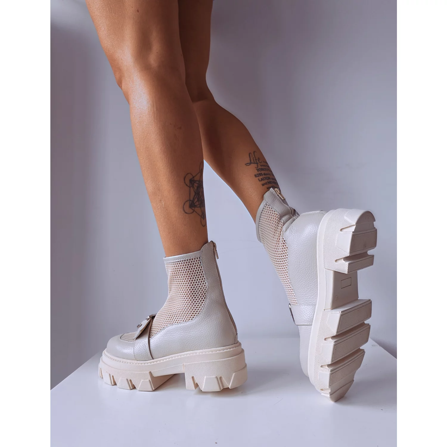 Ghete dama de vara Piele Naturala Bej si plasa textil Kamila