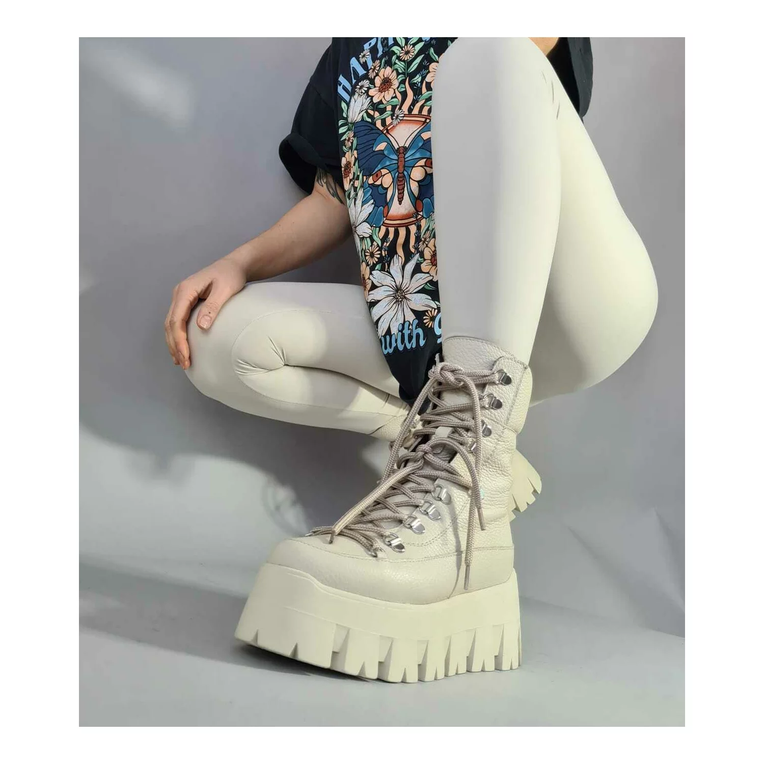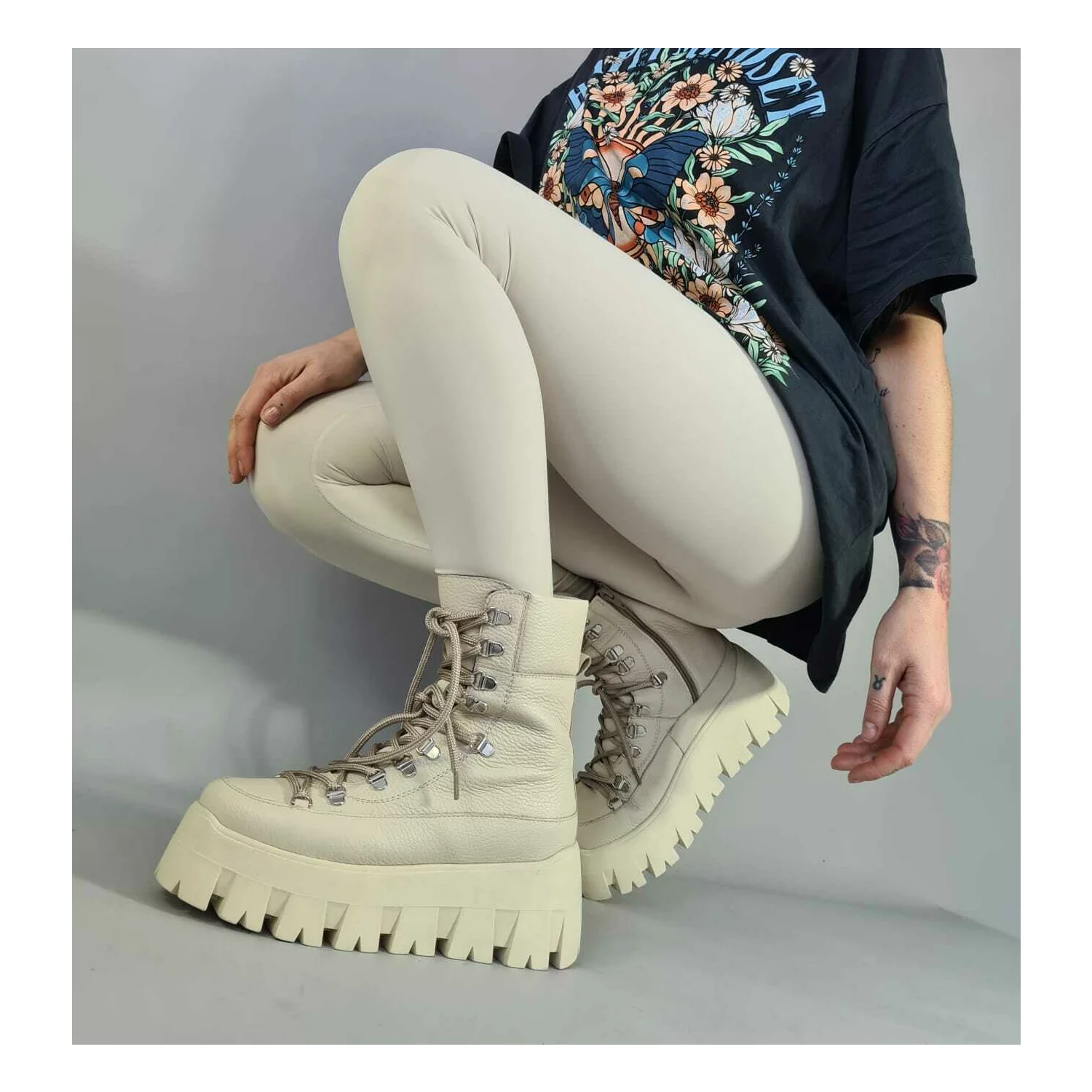 - Ghete casual de dama tip bocanc cu talpa platforms. La interior au fermoar functional. Ghete de iarna.
