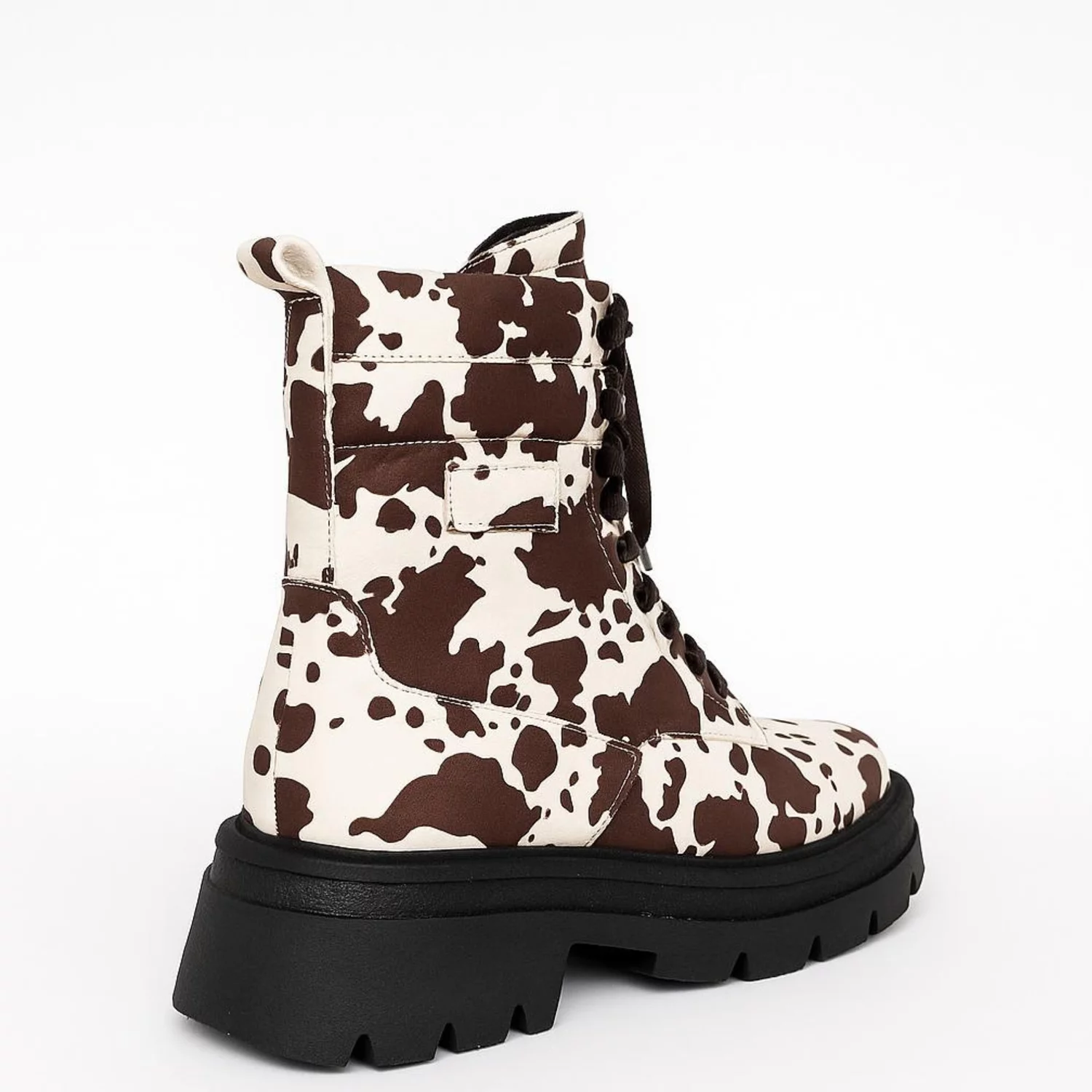 Ghete damă Joy din piele naturală box cu imprimeu bej-maro – stil expresiv și confort termic by Garkony
