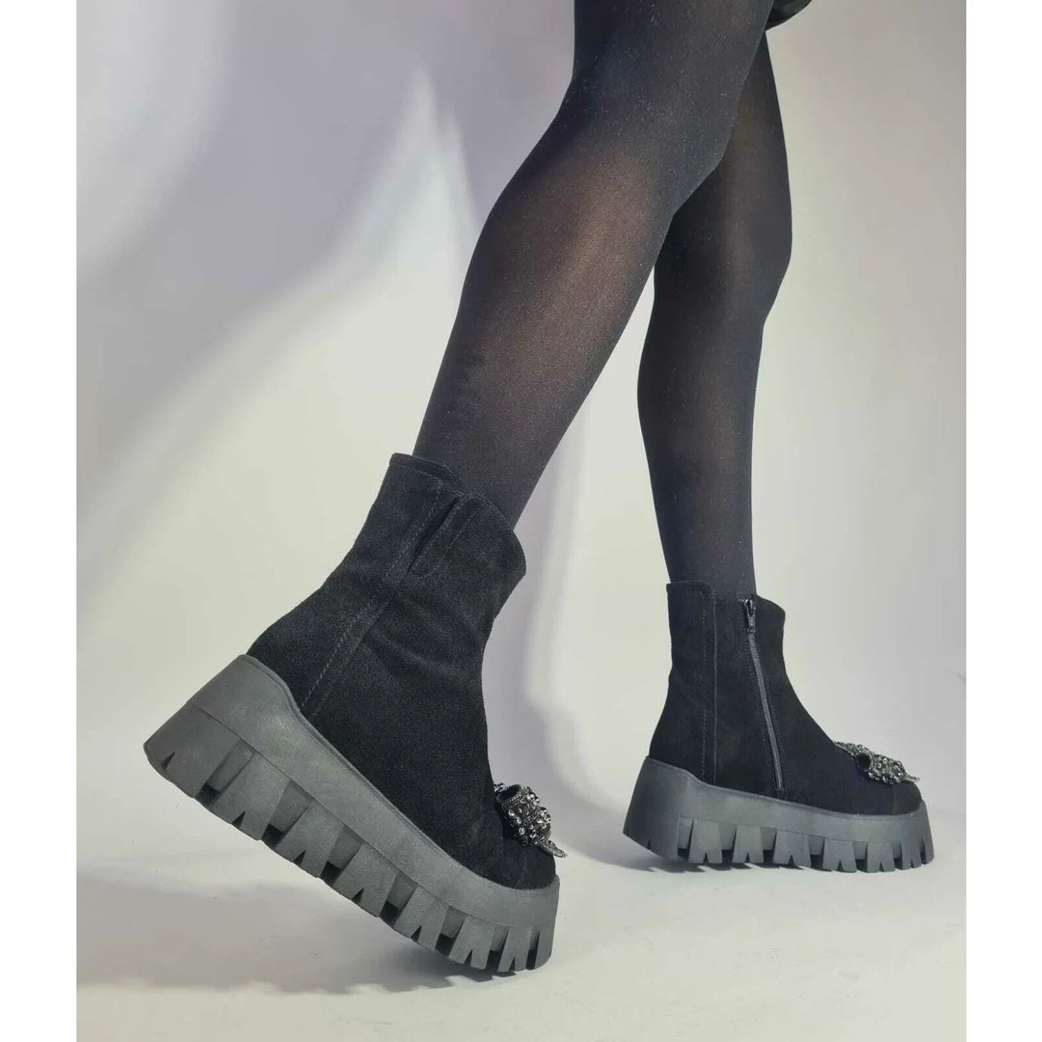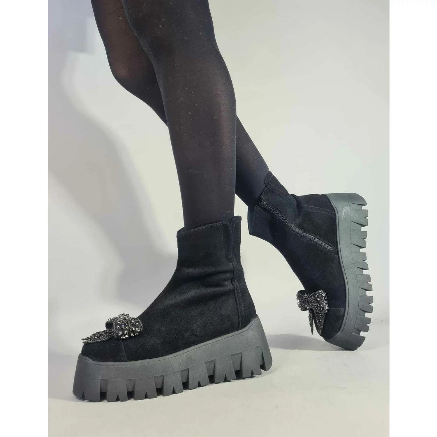 - Ghete casual de dama tip bocanc cu talpa platforms accesorizate cu o funda superba. La interior au fermoar negru functional. Ghete de iarna.