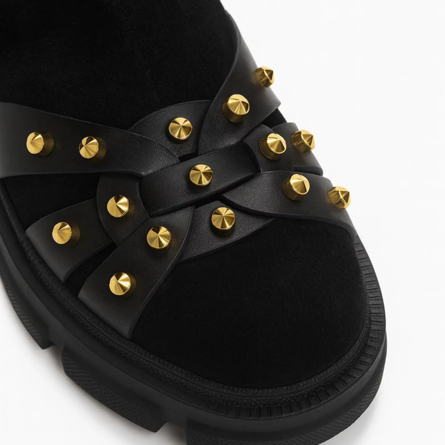 - Ghete de dama tip bocanci din piele naturala acesorizate cu capse aurii.