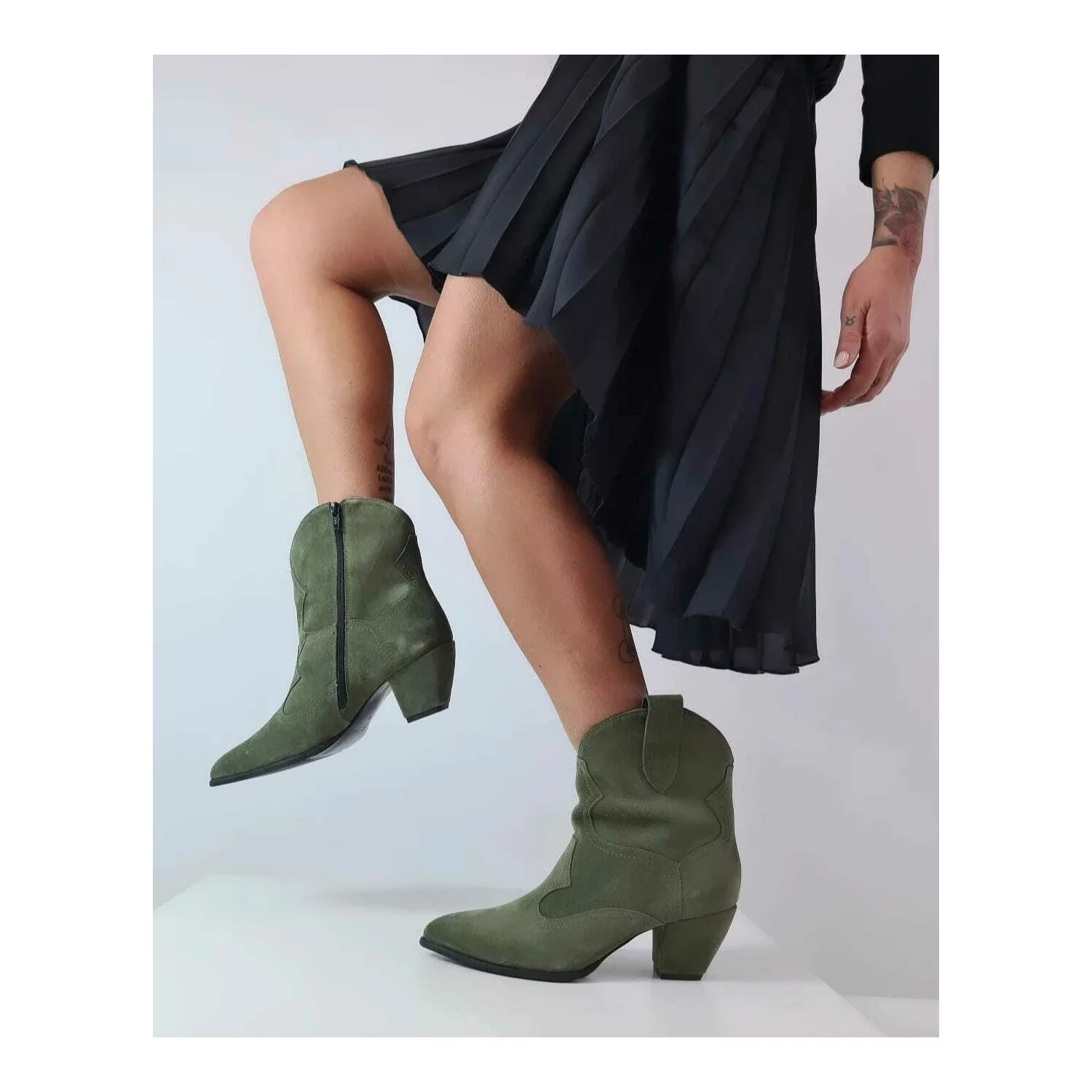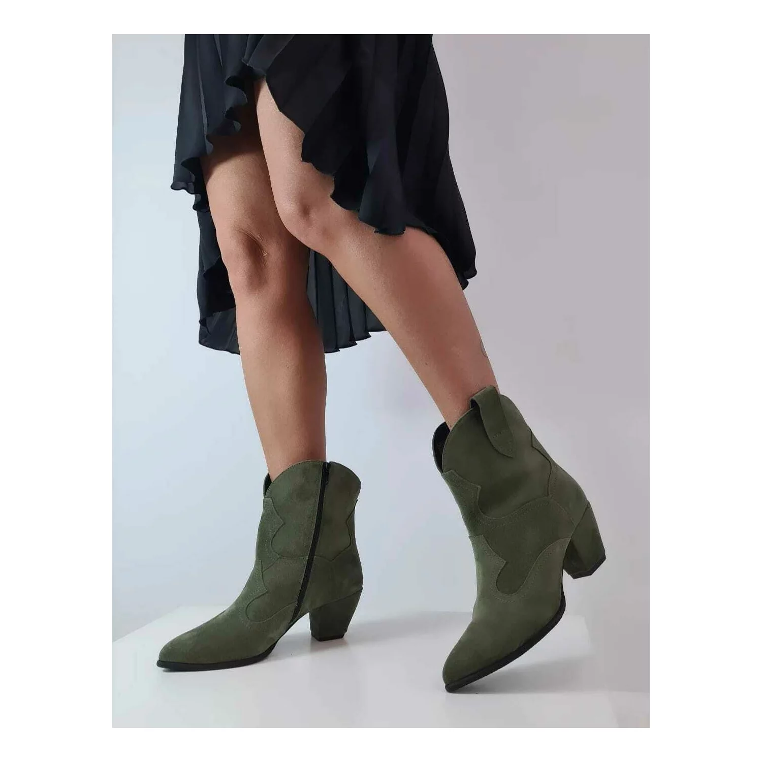 - Piele naturala: velur kaki