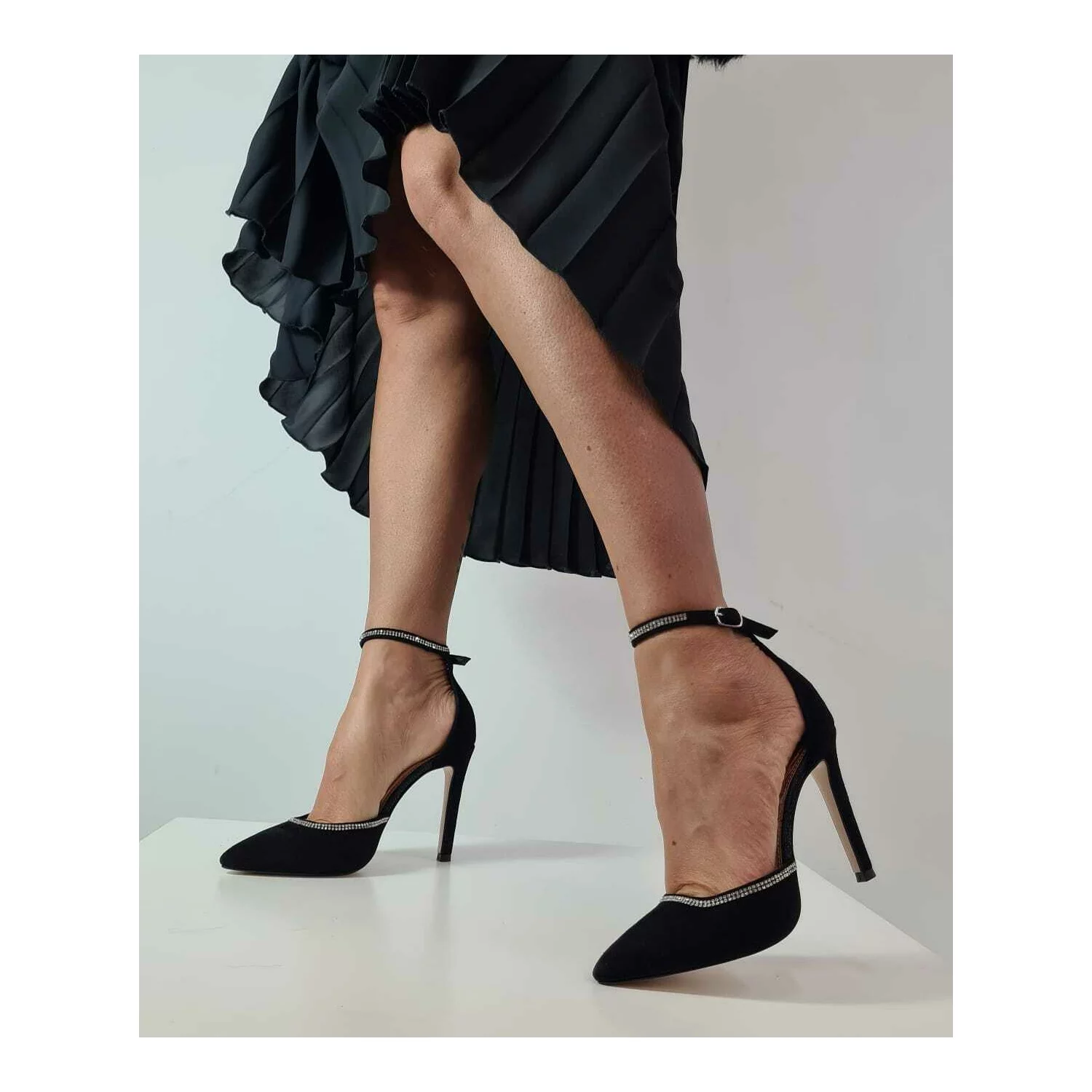 - Pantofi eleganti de dama cu toc stiletto.. Un model de pantofi care te scoate in evidenta prin finisaje de inalta calitate si alura. Acesorizati cu strasuri argintii.