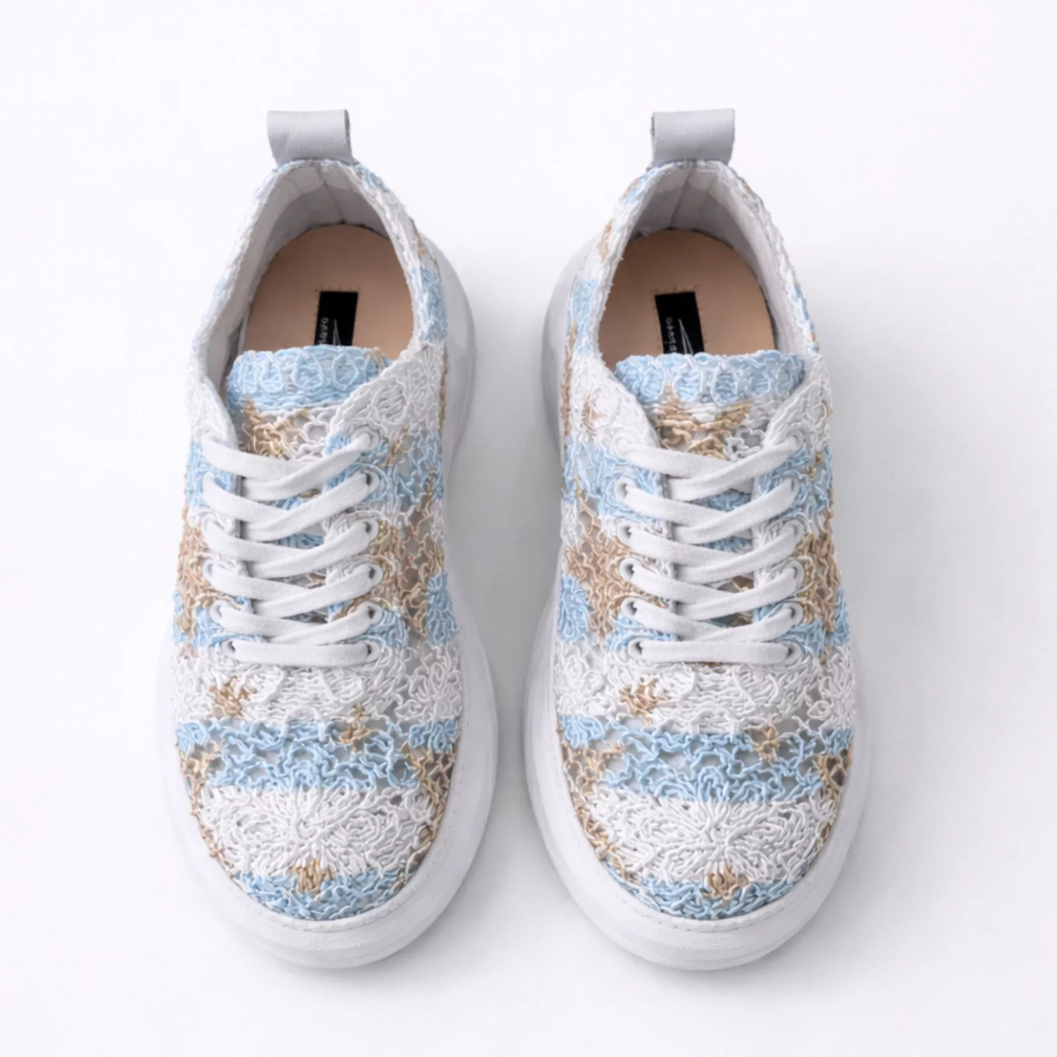 Pantofii casual AirLace sunt alegerea ideală pentru un look fresh, feminin și modern. Realizați din plasă cu dantelă în nuanțe blue, acest model din colecția nouă oferă un design aerisit și ușor, perfect pentru sezonul cald.