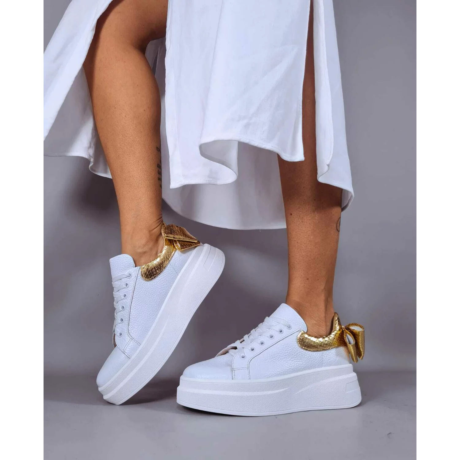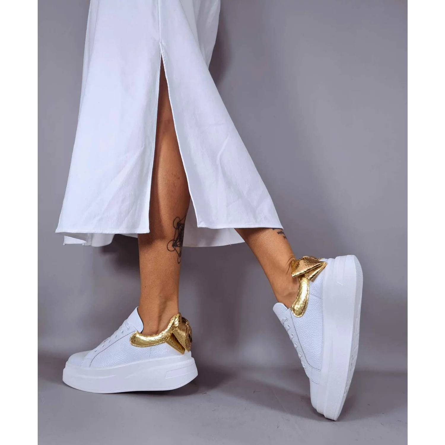 Pantofi casual Piele Naturala Abi cu Auriu Bow
