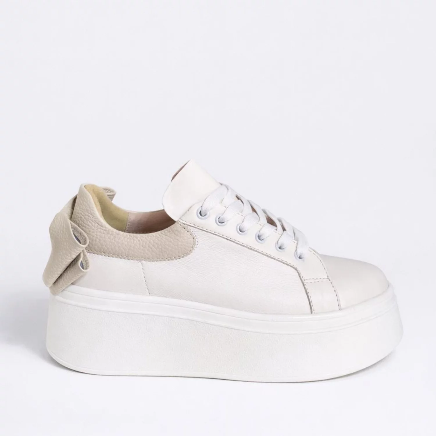 Pantofi casual Bow din piele naturală box alb off-white cu verde bej. – stil feminin și confort modern