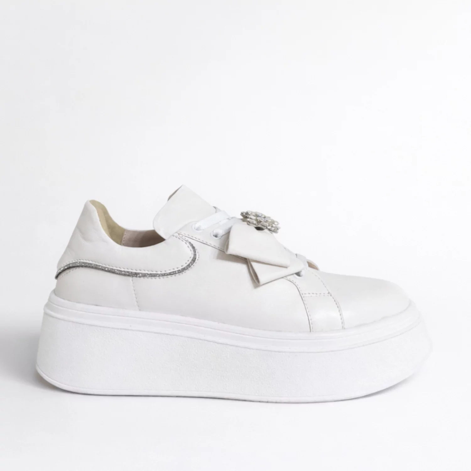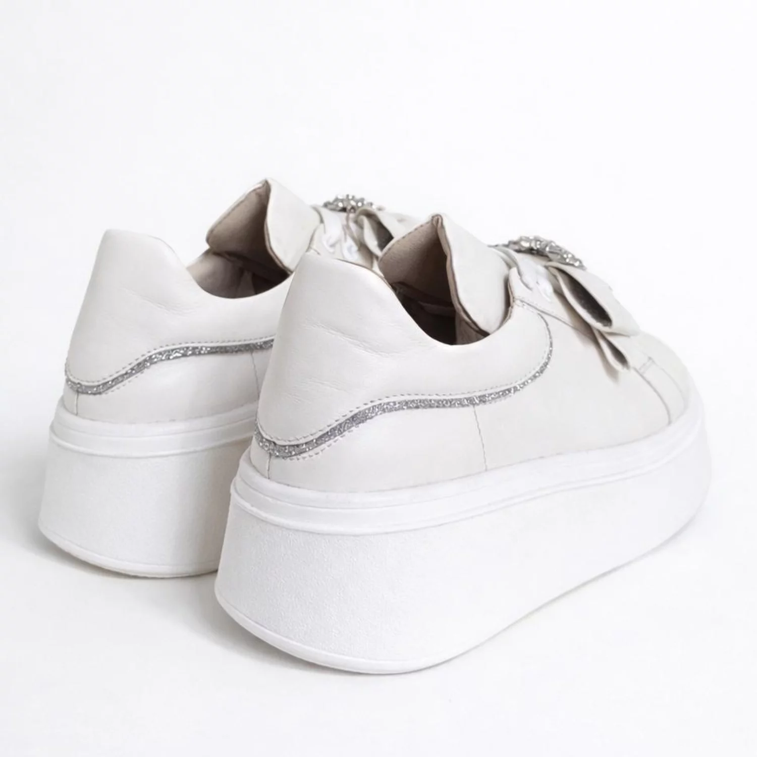Pantofi casual Piele Naturala Albi cu funda si accesoriu Noam