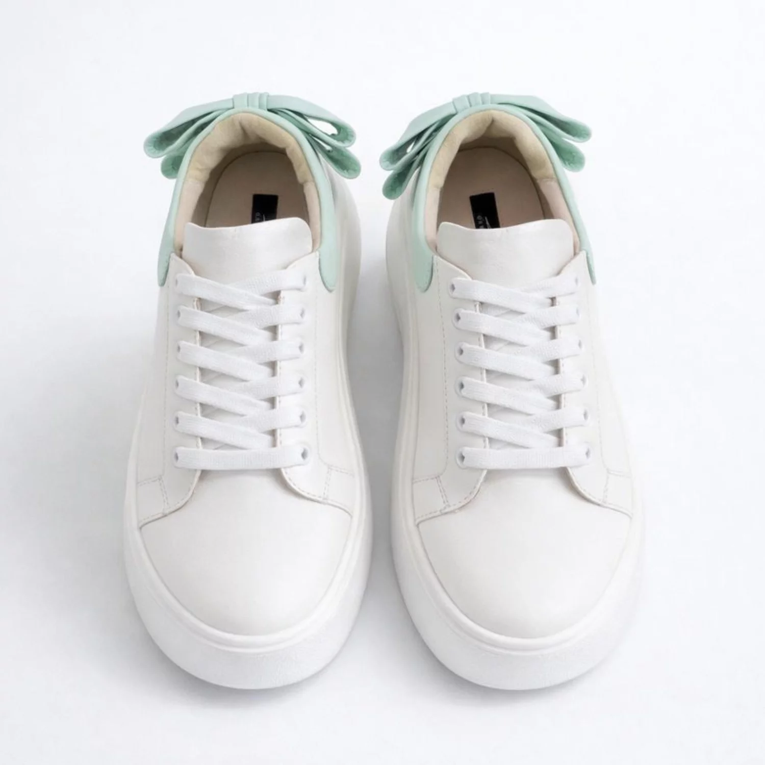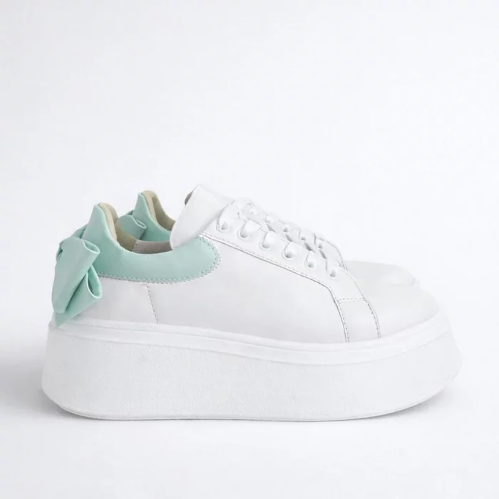 Pantofi casual Piele Naturala Albi cu Verde Turcoaz Bow
