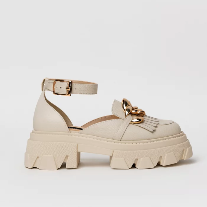 Pantofi Casual Piele Naturala Bej accesoriu lant City
