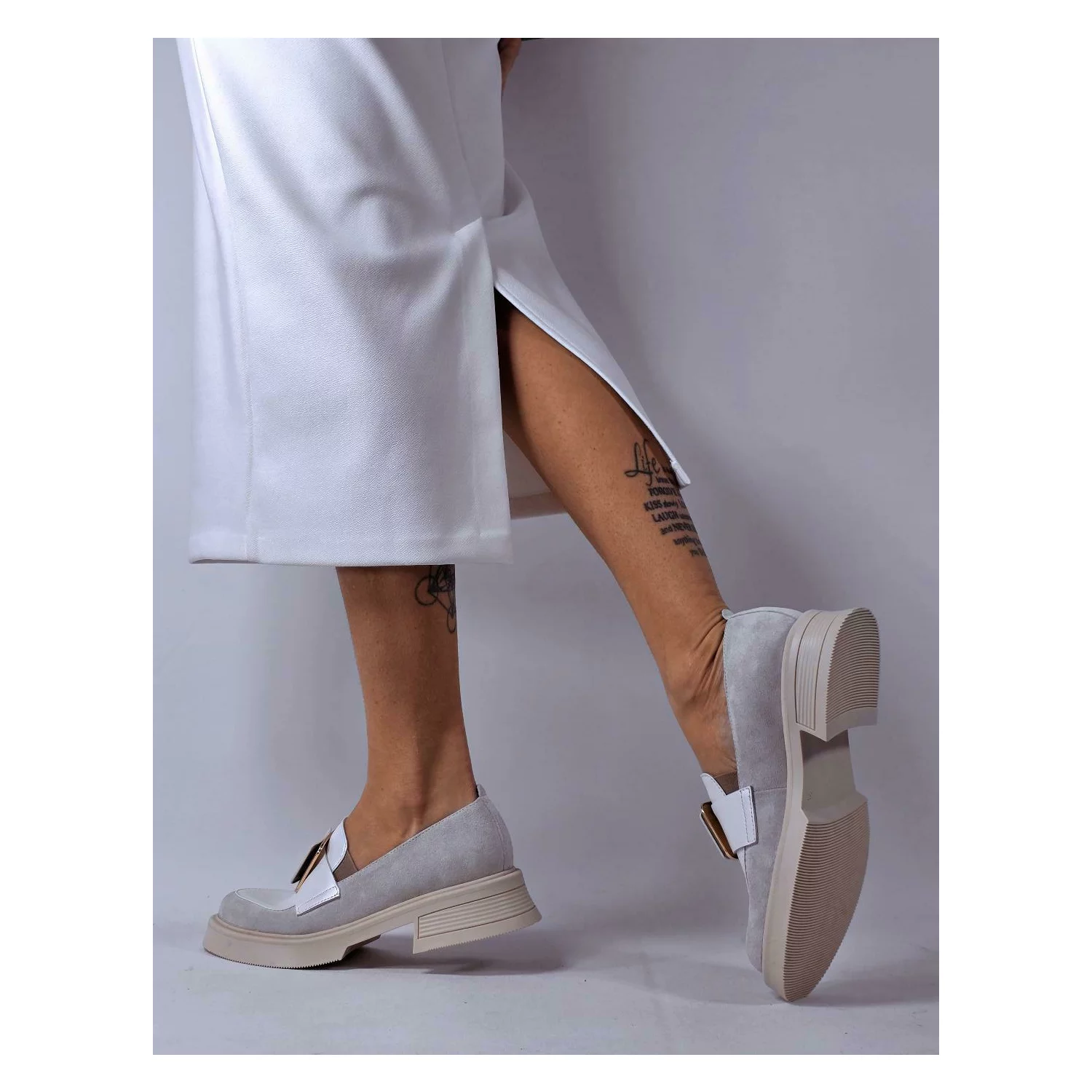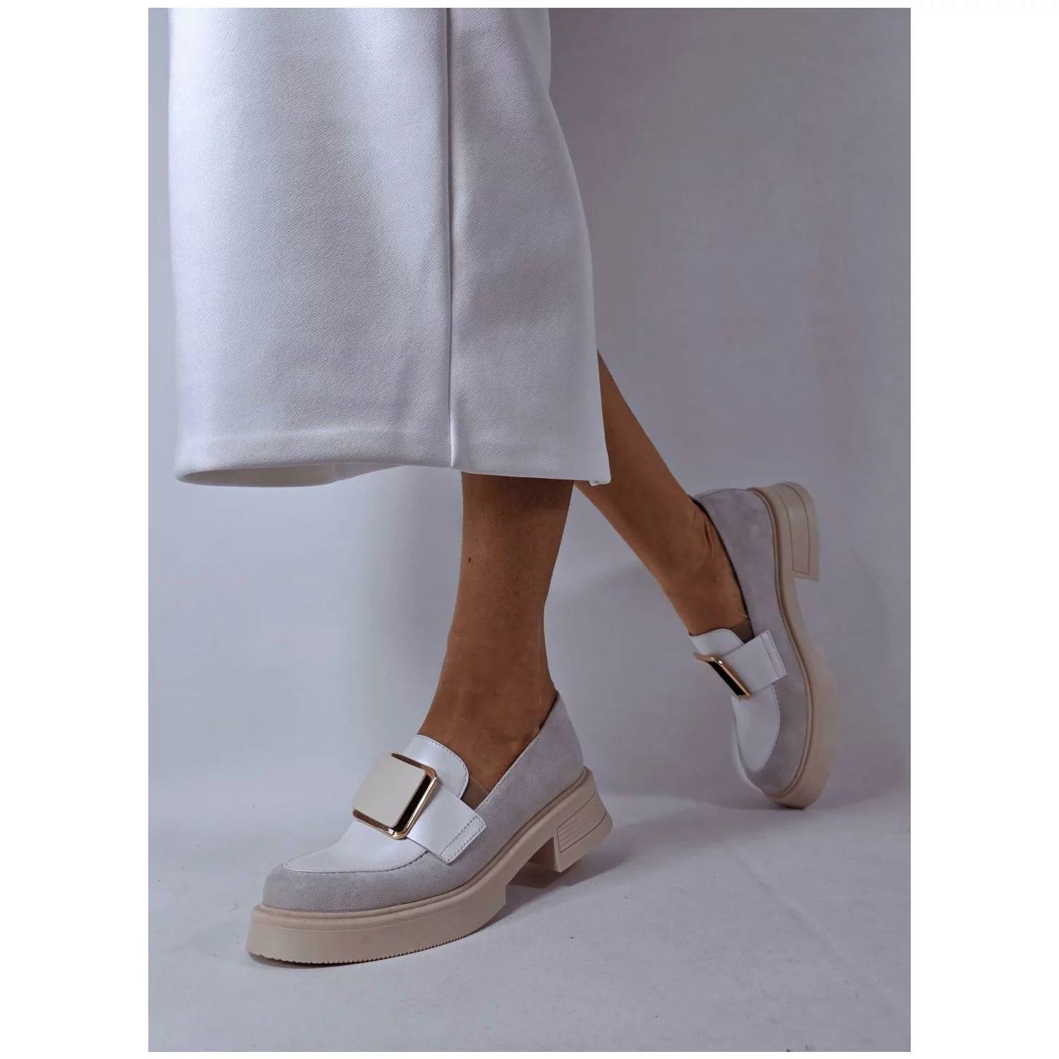 - Pantofi de dama din piele naturala velur bej cu alb accesorizati cu un accesoriu superb. Fabricati in atelierul nostru de cei mai buni mestesugari. Accesoriul poate fi cu partea metalica aurie s-au argintie in functie de disponibilitatea furnizorului in momentul plasarii comenzii.