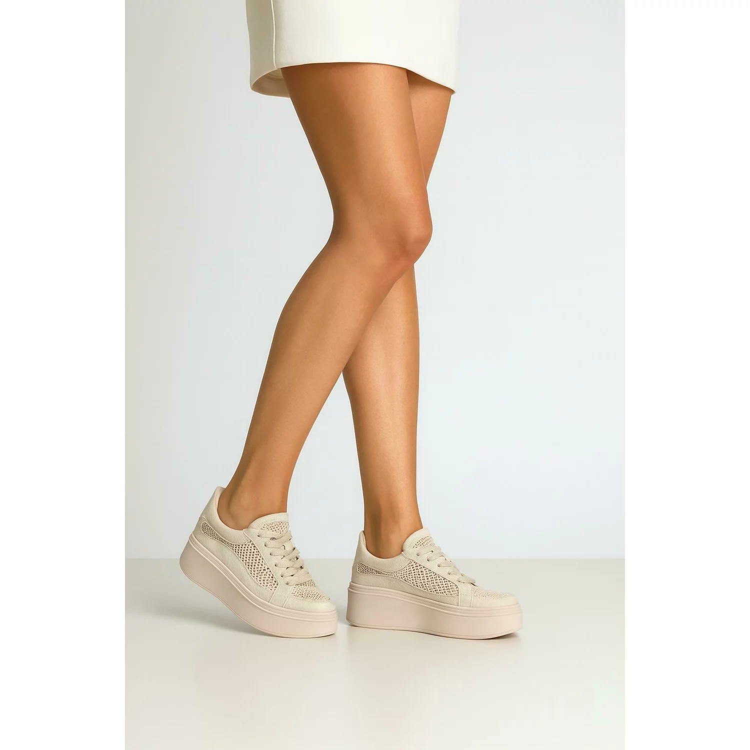 Pantofi casual Piele Naturala Bej cu textil broderie Dami