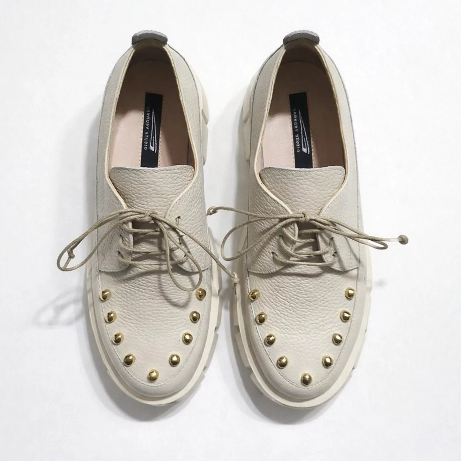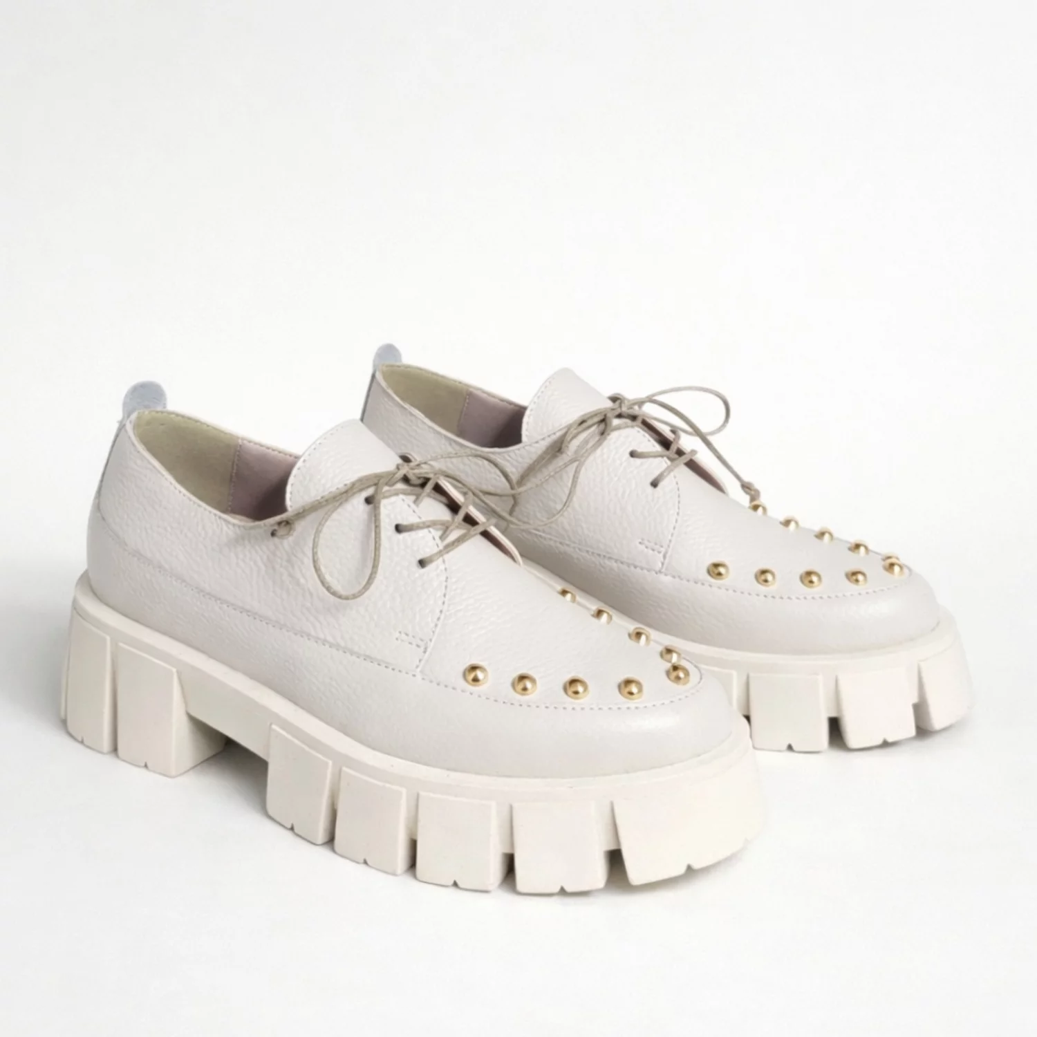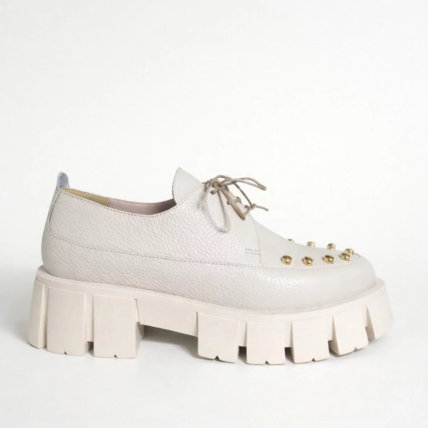 Pantofi casual Luke din piele naturală box bej. Interior din piele, mărimi 35–40, colecția nouă. Producător Garkony.