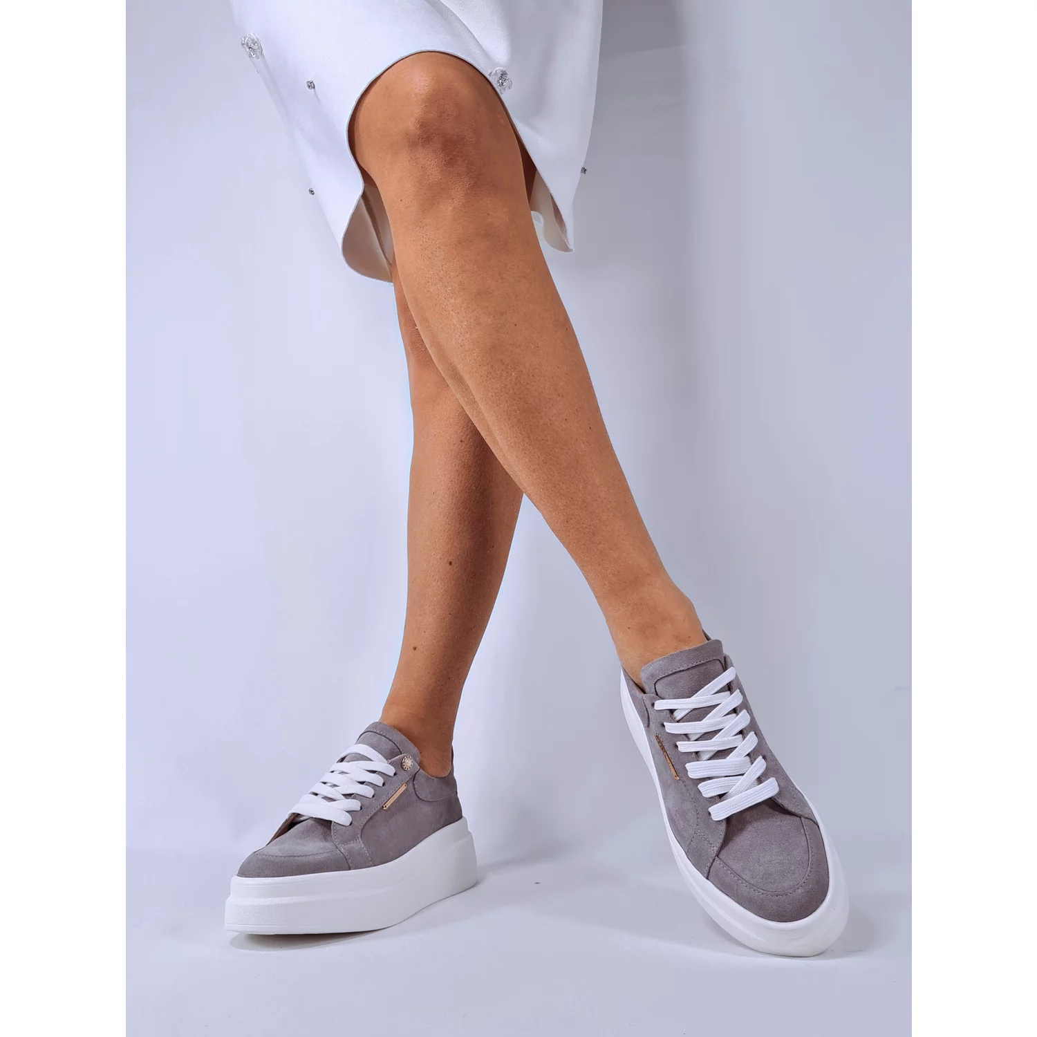 - Pantofi casual de dama din piele naturala velur gri
