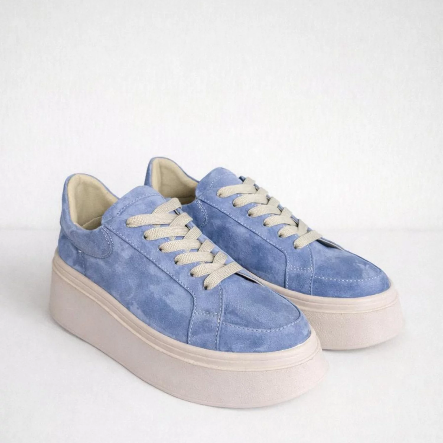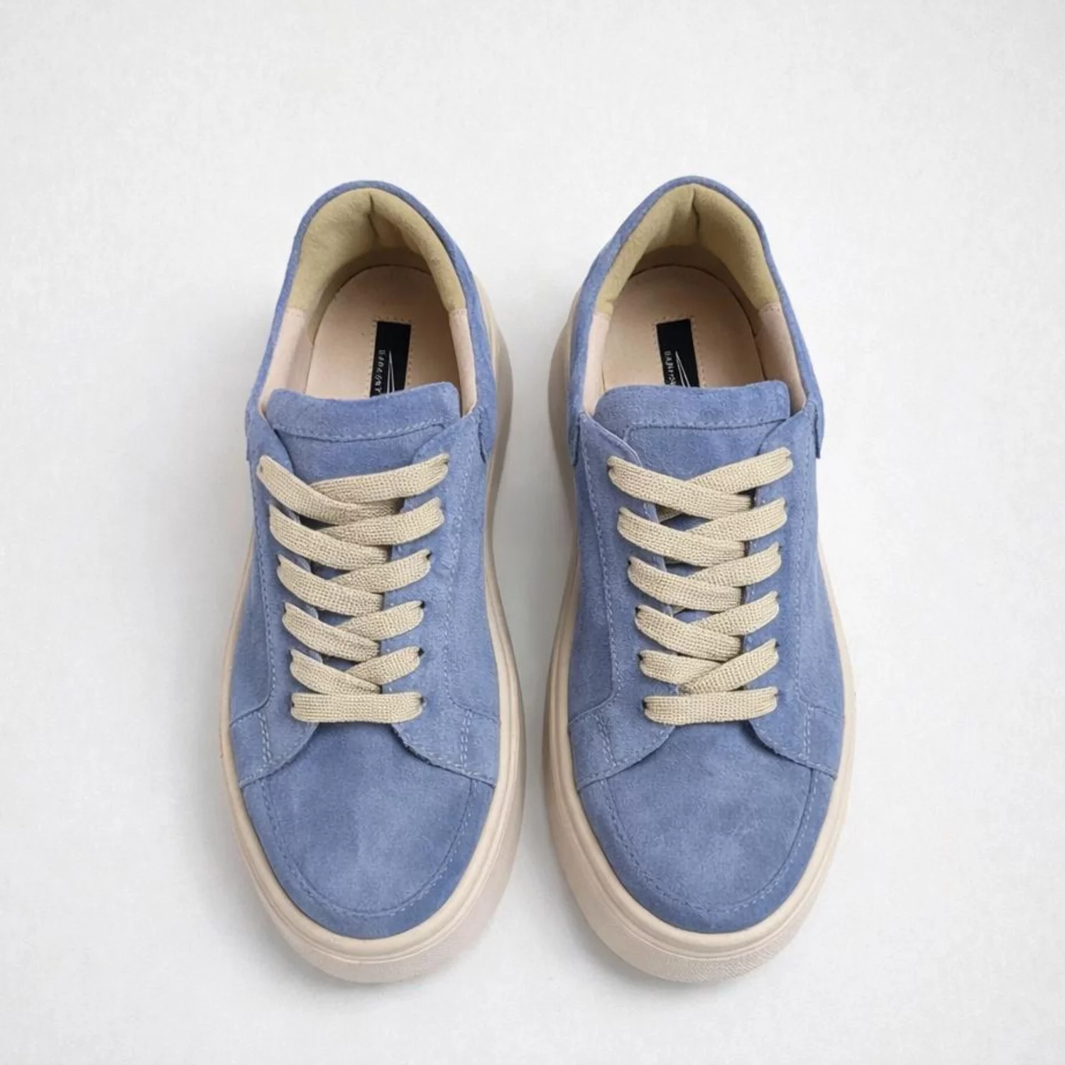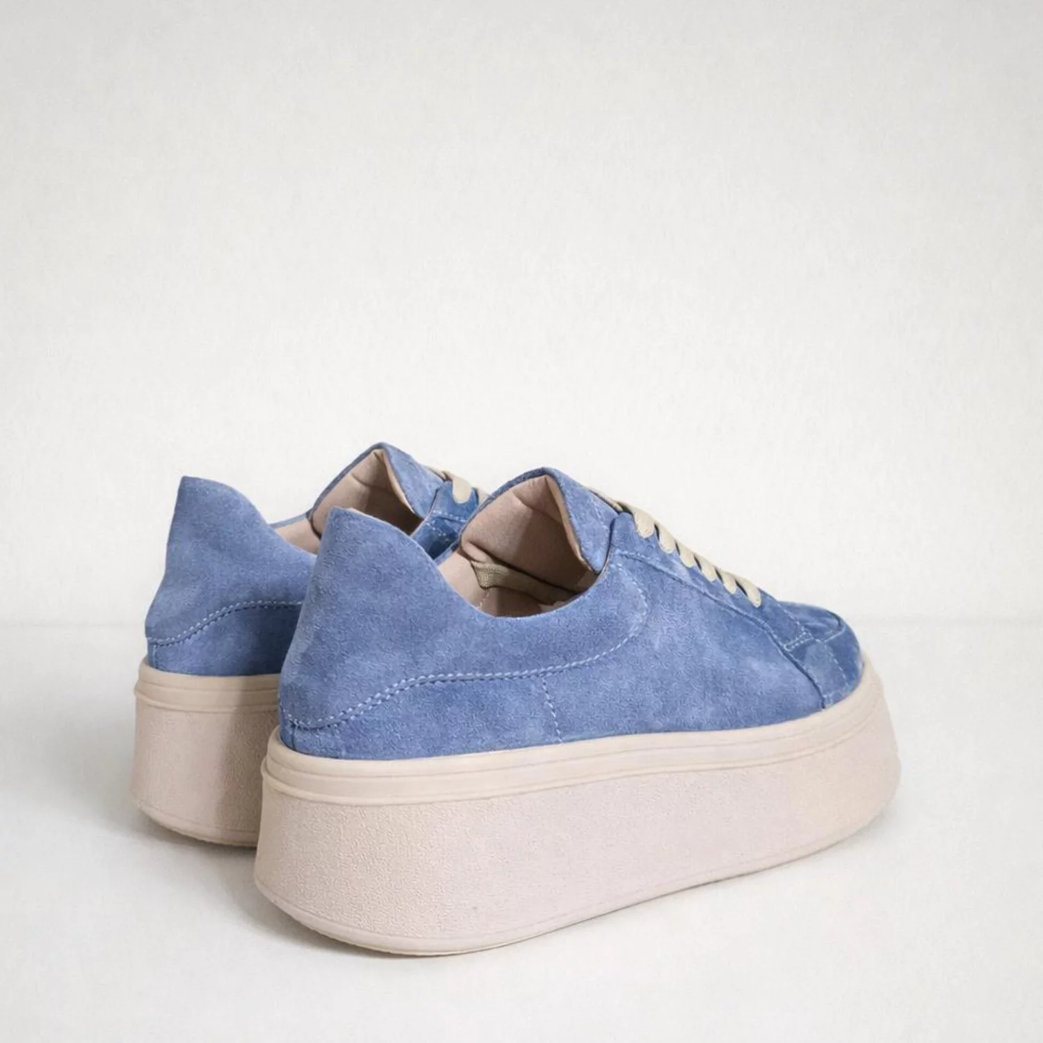 Pantofi casual Sunny din piele naturală velur blue, confortabili și moderni. Talpă groasă, colecție nouă. Mărimi disponibile 34–40. Producător Garkony