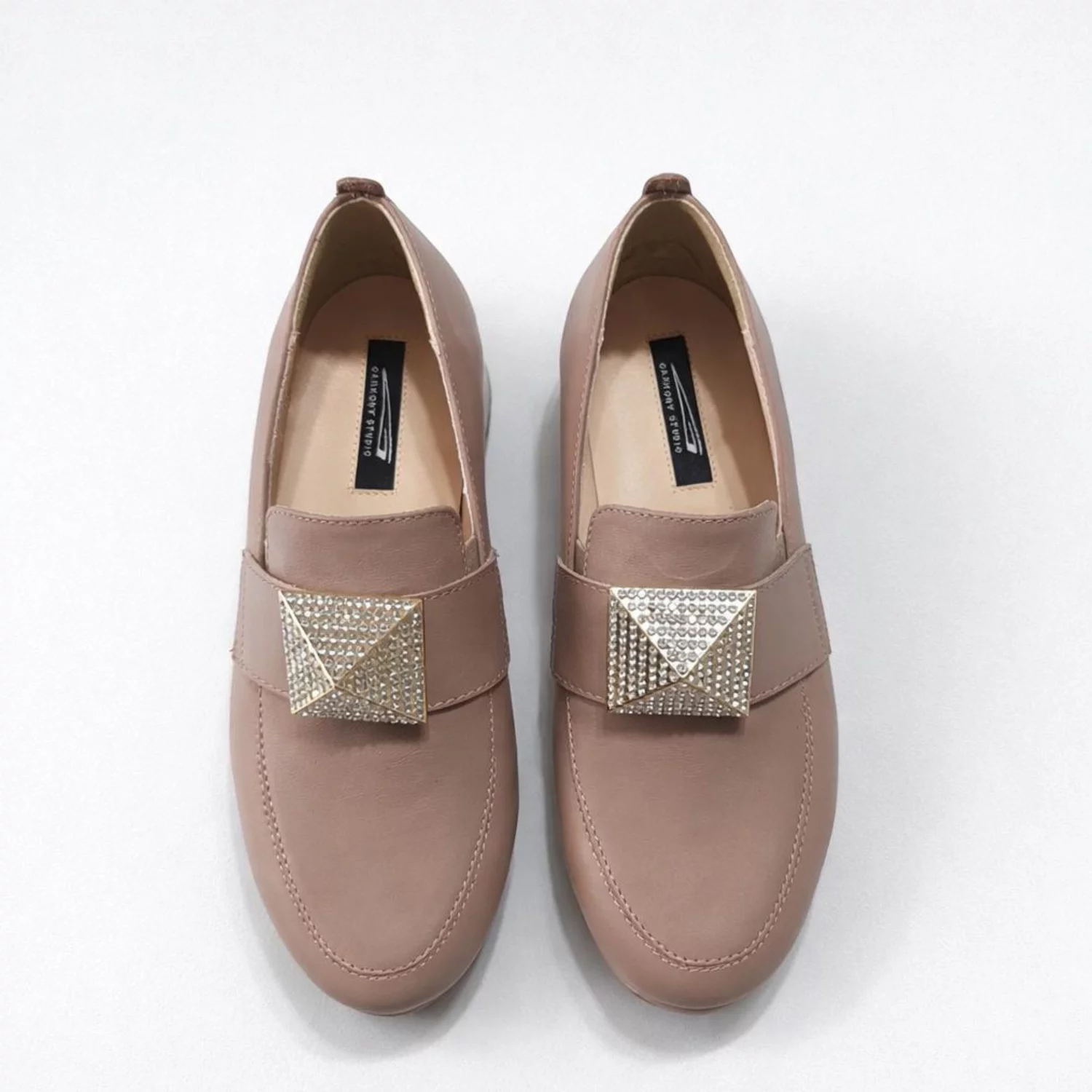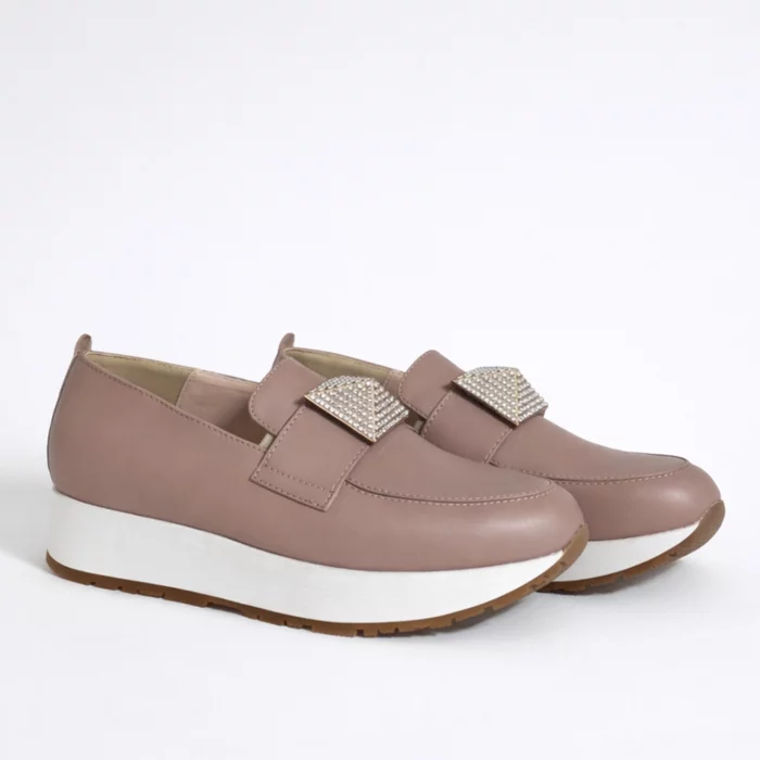 Pantofii casual Klara din piele naturală box bej sunt alegerea perfectă pentru un stil modern și confortabil. Parte din colecția nouă, modelul se remarcă prin designul minimalist și accesoriul decorativ tip piramidă, care adaugă un accent elegant și contemporan.